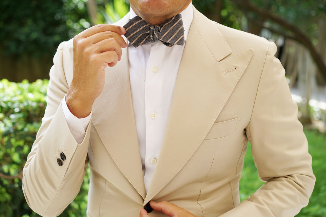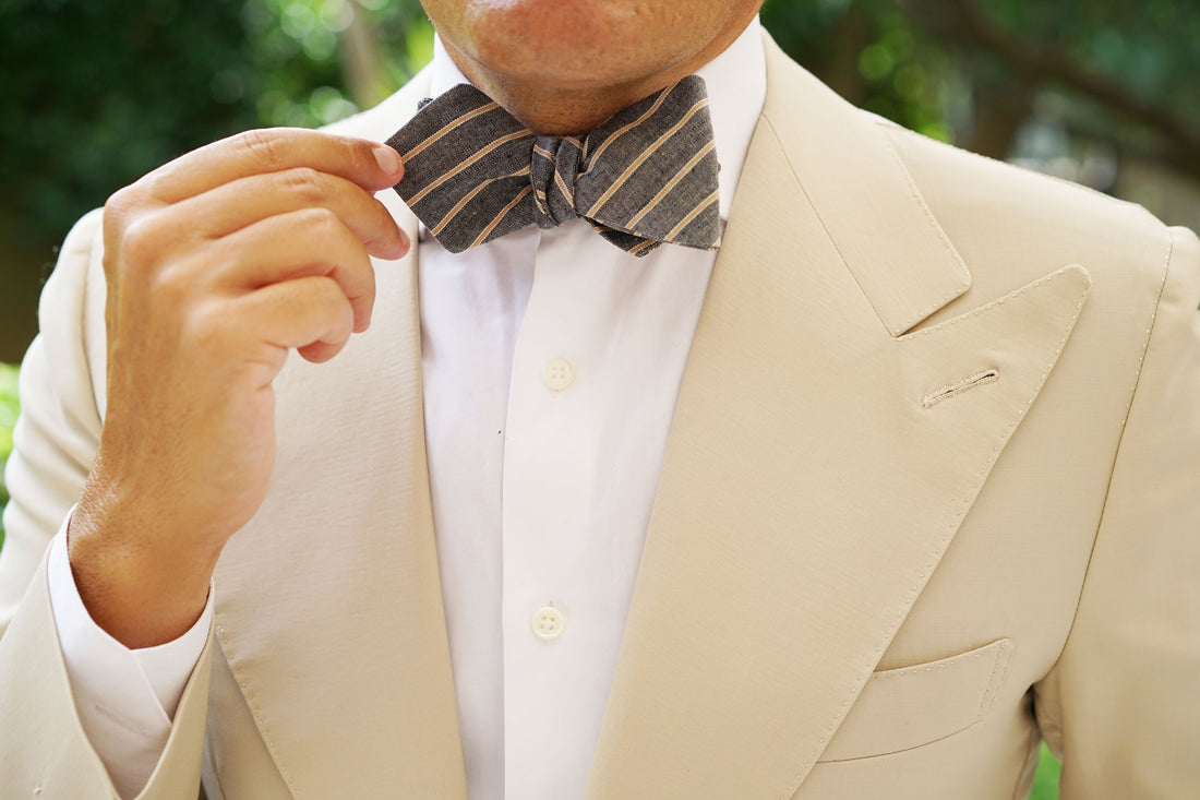 The Brothers at OTAA designed this Mustard Pinstripe Diamond Self-Tie Bow Tie in an old dusty art studio. They had to share the space with a monk who spoke sutras to them while they worked. It was on one auspicious night, when the wind was wildly howling, the monk walked over to their canvas and looked them in the eye. He spoke no words but the brothers knew he was thinking: “This Mustard Pinstripe Diamond Self-Tie Bow Tie is the best damn thing I’ve ever seen. Your work here now is done.” It had taken them 5 years to complete.