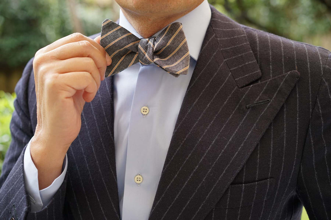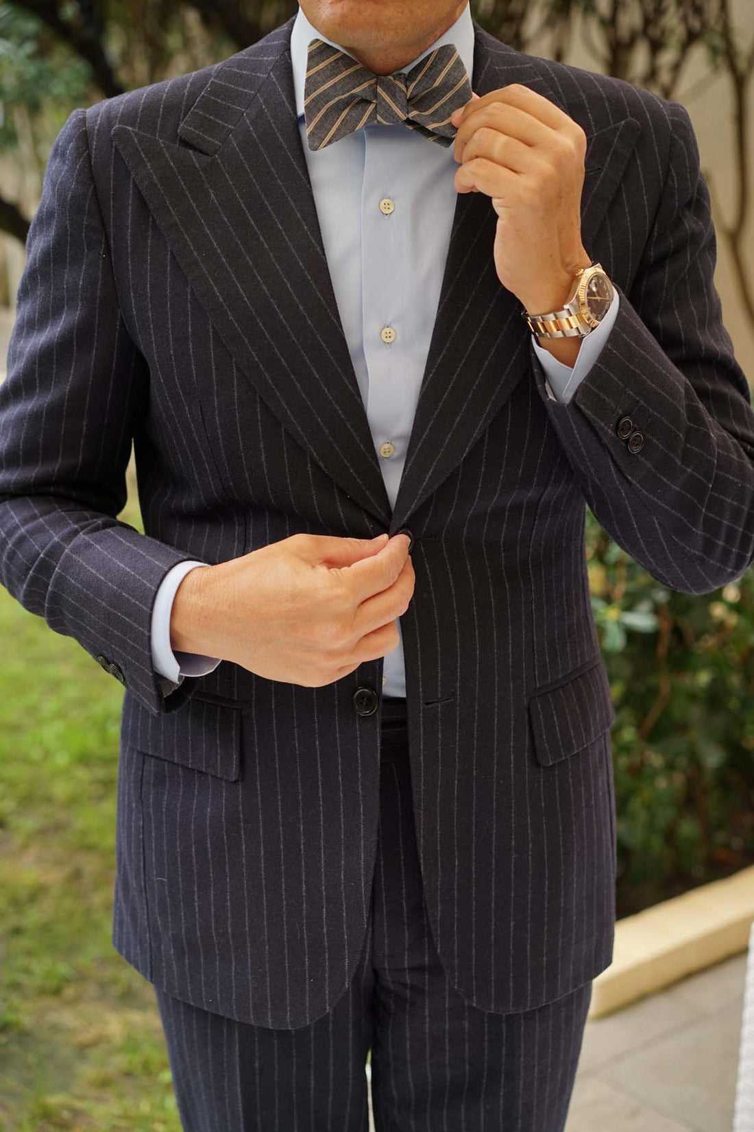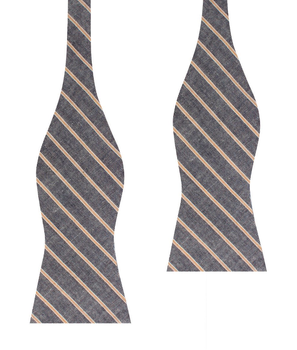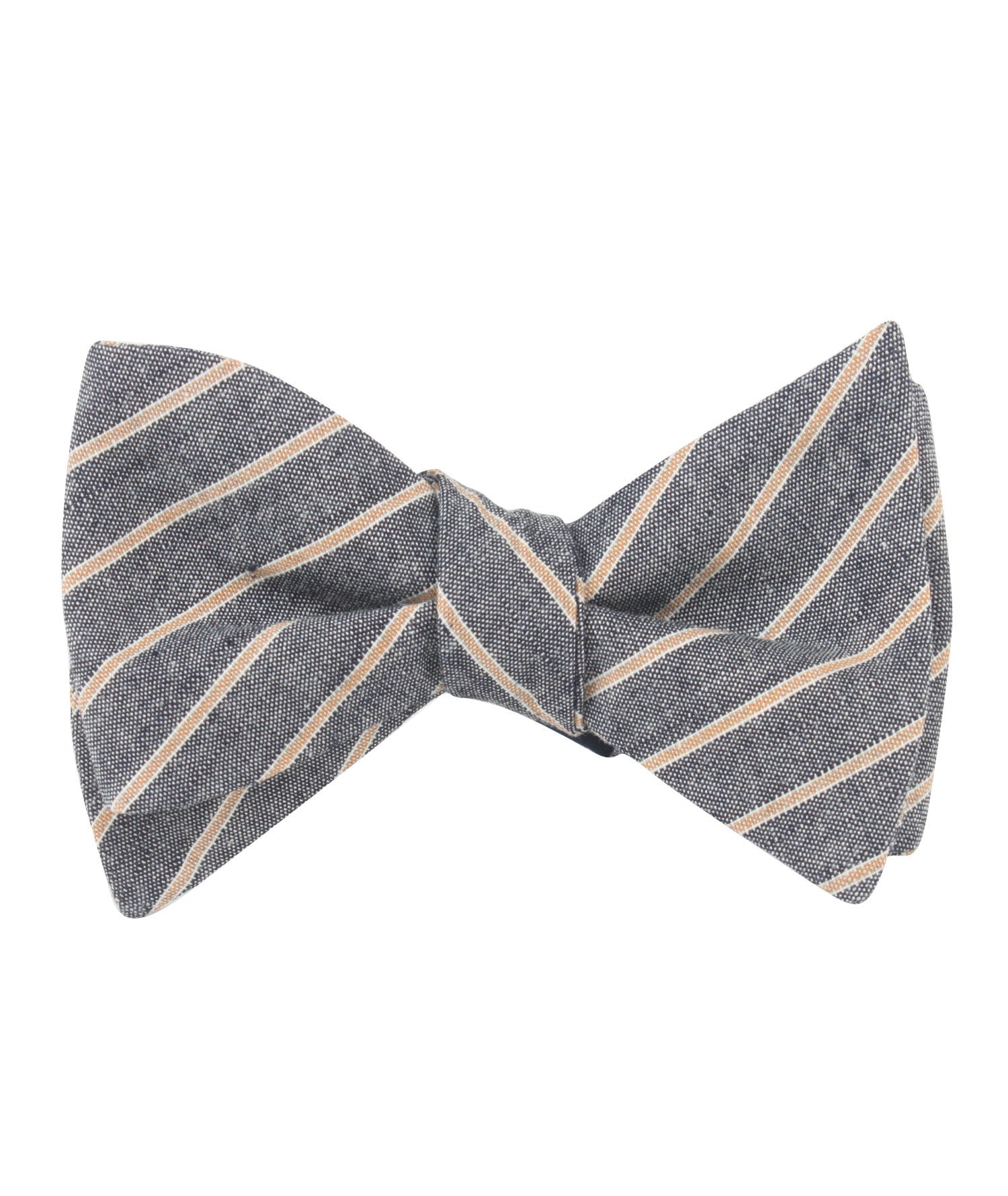 OTAA’s hand-stitched approach to tailoring means this self tie bow tie emanates a high-quality presence as part of everyday ensembles. Cotton offers a thick fabric that's comfortably breathable. The deep grey palette is paired with mustard diagonal stripes that are delicately emblazoned throughout. Wear it to bring an accomplished finish to everyday styles. Designed exclusively by the Brothers at OTAA.