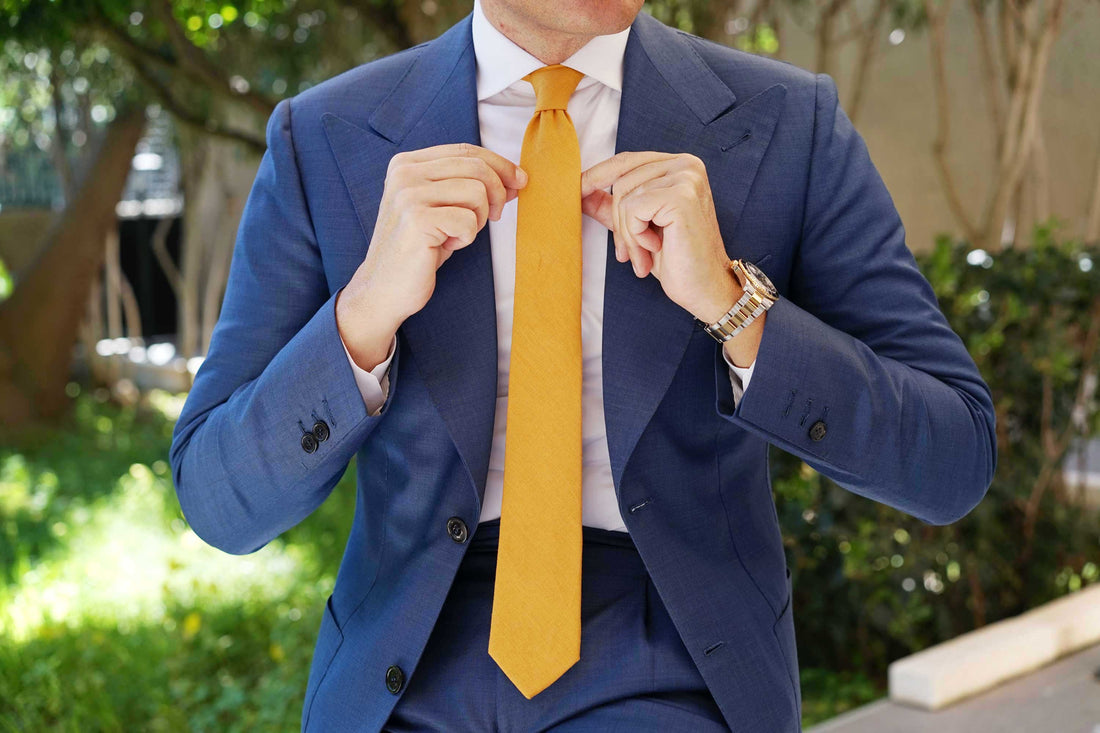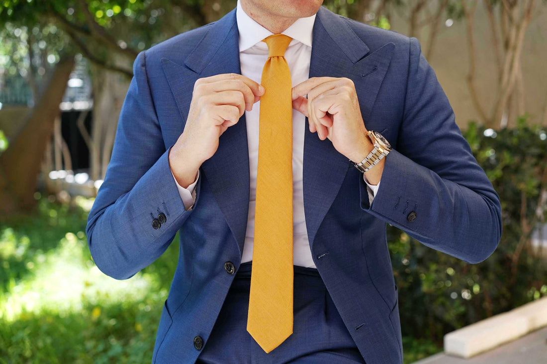 The Brothers at OTAA designed this Mustard Yellow Slub Linen Skinny Tie in an old dusty art studio. They had to share the space with a monk who spoke sutras to them while they worked. It was on one auspicious night, when the wind was howling wildly, the monk walked over their canvas and looked them in the eye. He spoke no words but the brothers knew what he was thinking: “This Mustard Yellow Slub Linen Skinny Tie is the best damn thing I’ve ever seen. Your work here is done now." It had taken them 5 years.