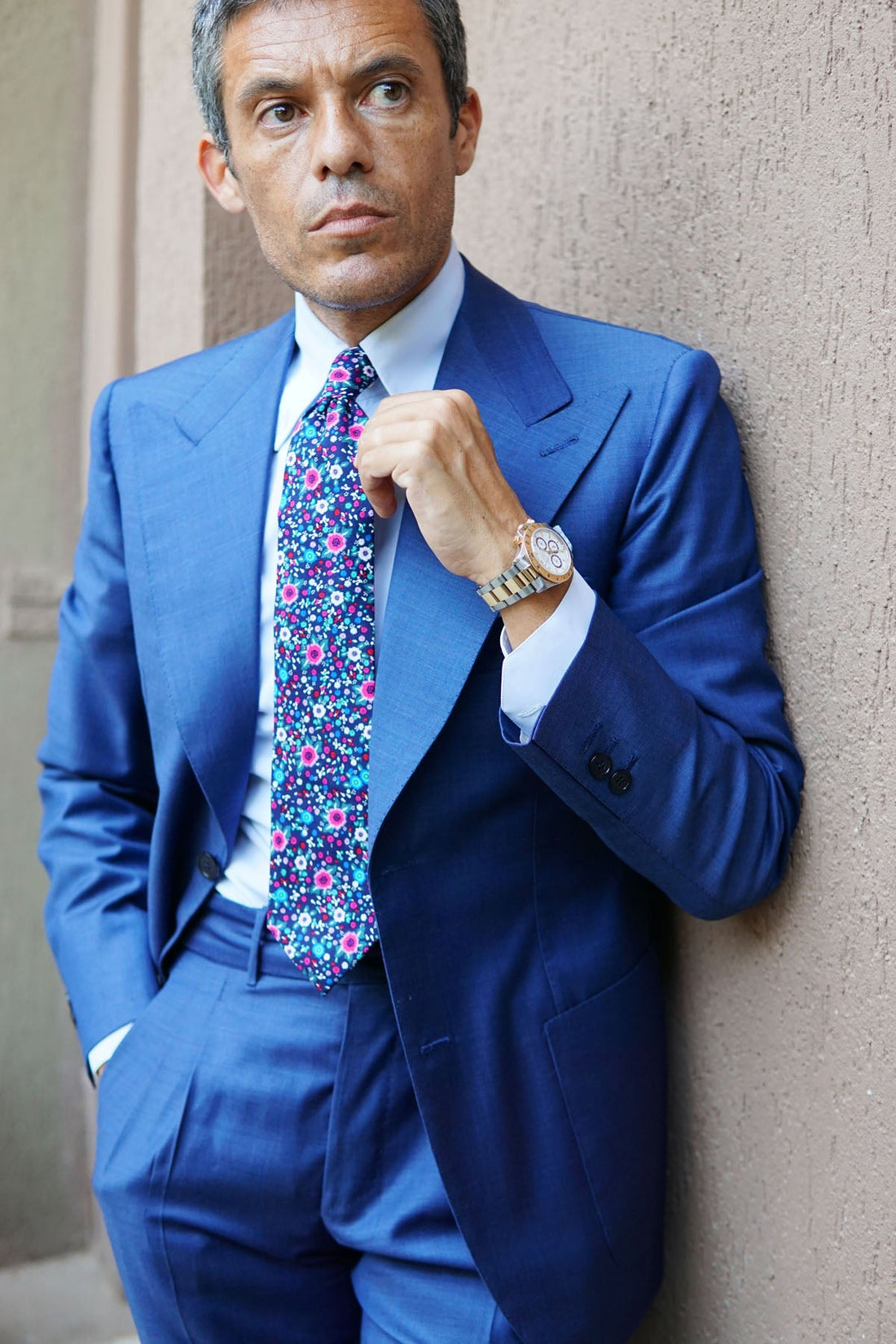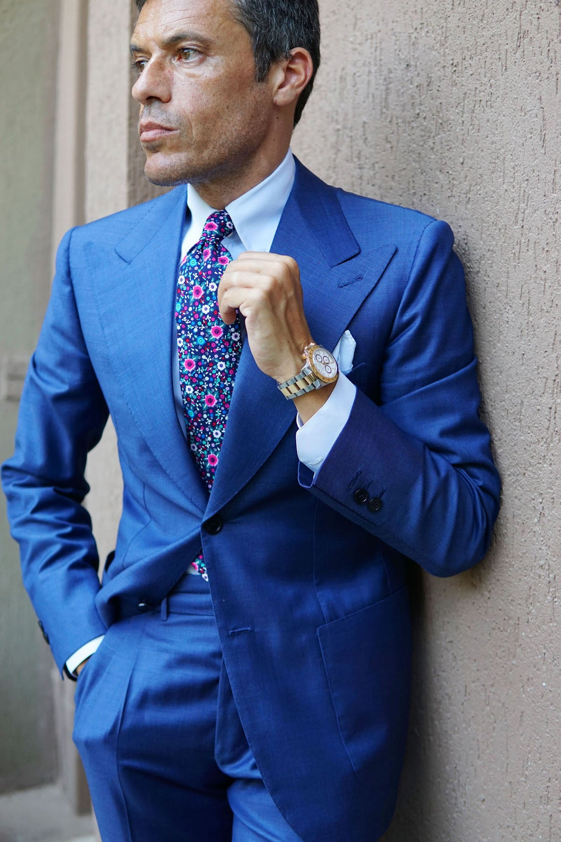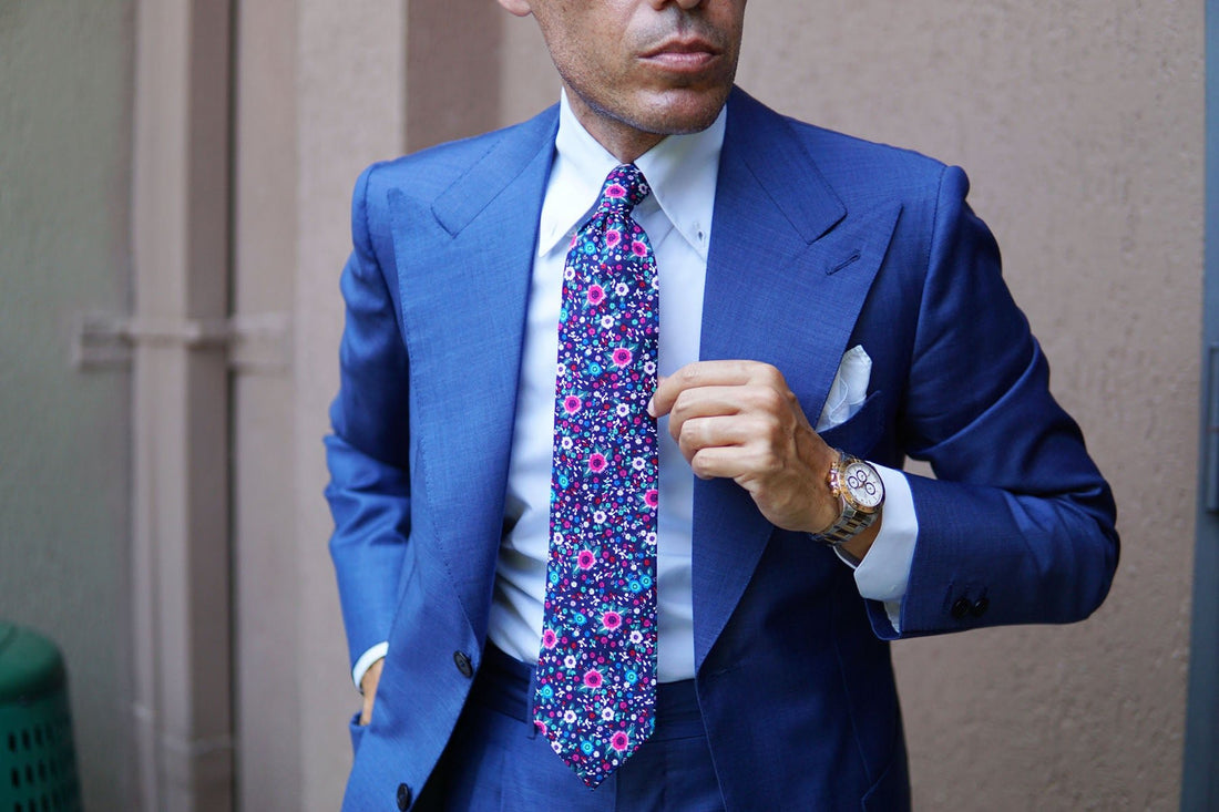 The high-quality attributes of this necktie are met with a sophisticated floral design; making it as much a decoration as a staple. The ebullient palette of navy, pink, blue and green hues is superbly encased in a striking floral design. Exclusively designed by the Brothers at OTAA, this Nairobi Floral Necktie is crafted by hand and tailored from a plush cotton fabric to give your suits a luxurious appeal.