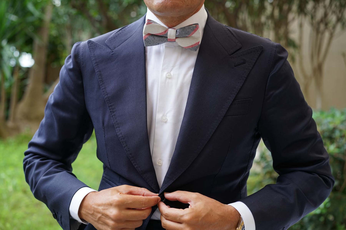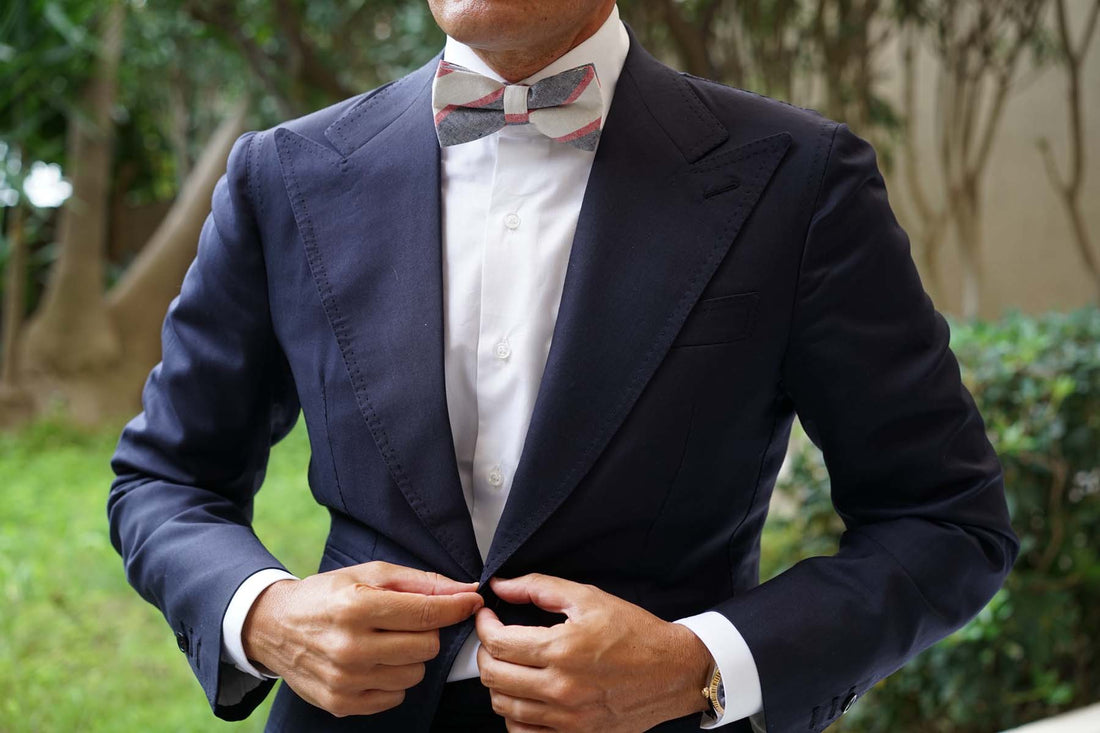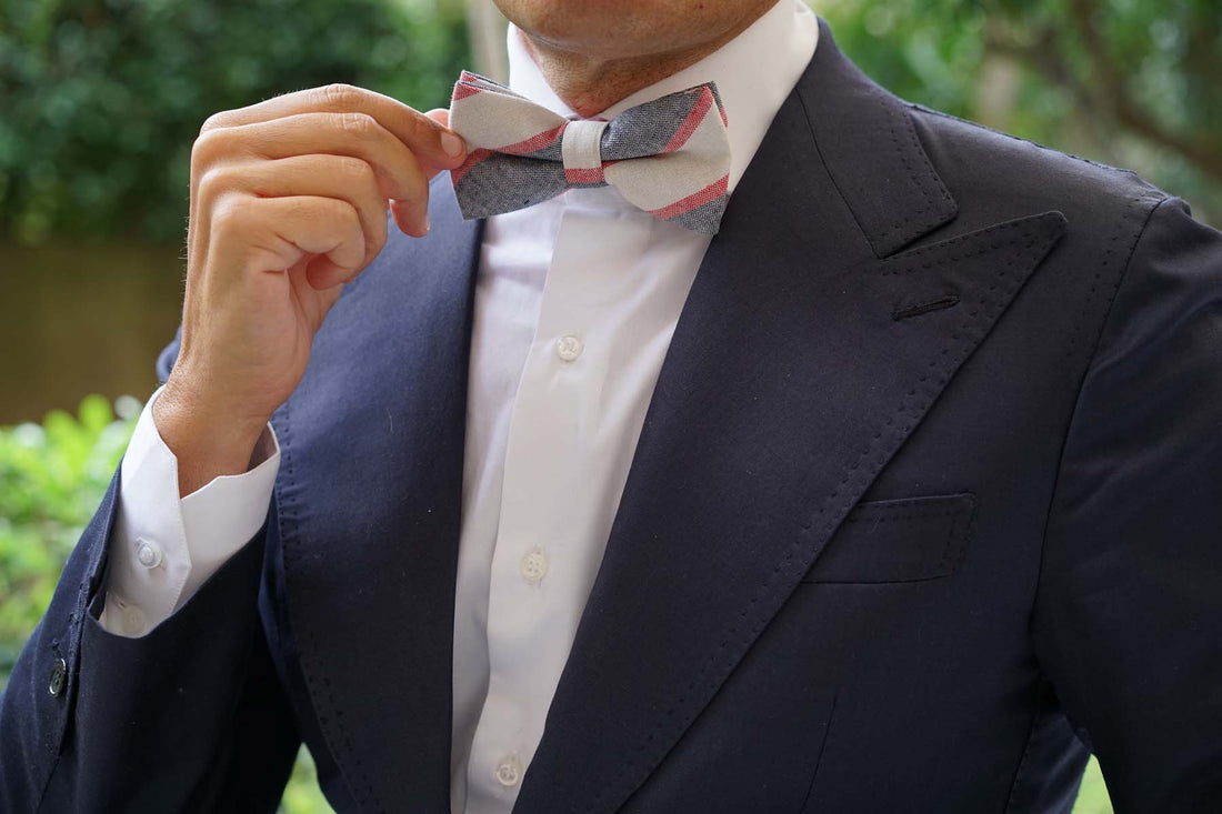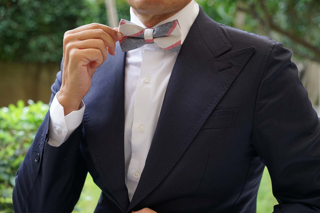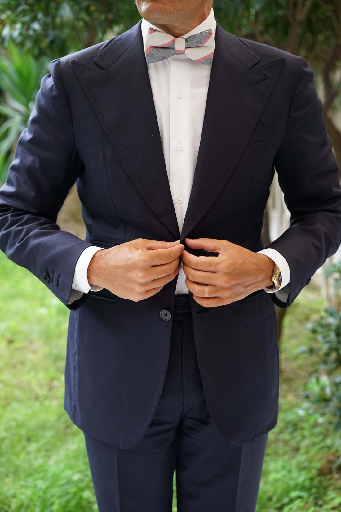 Finessed with the colours of the French national flag, this red, blue and white striped pre-tied bowtie will cultivate a sense of patriotism. Luxuriously hand-stitched from a breathable linen fabric, this Napoleon Inferno Linen Bow Tie offers a divine demonstration of the label’s dedication to superior quality. Designed exclusively by the Brothers at OTAA.