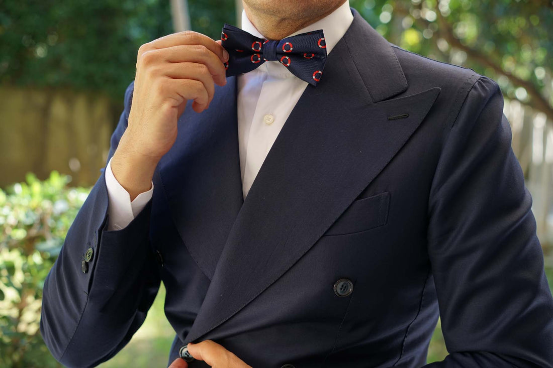 The Brothers at OTAA offer authentic style and there are few pieces as unique as our signature Nautical Float Bow Tie. The red and white float-embroidered Bow Tie is cut in a classic blue and is detailed with the label's stitch throughout for a fresh finish.