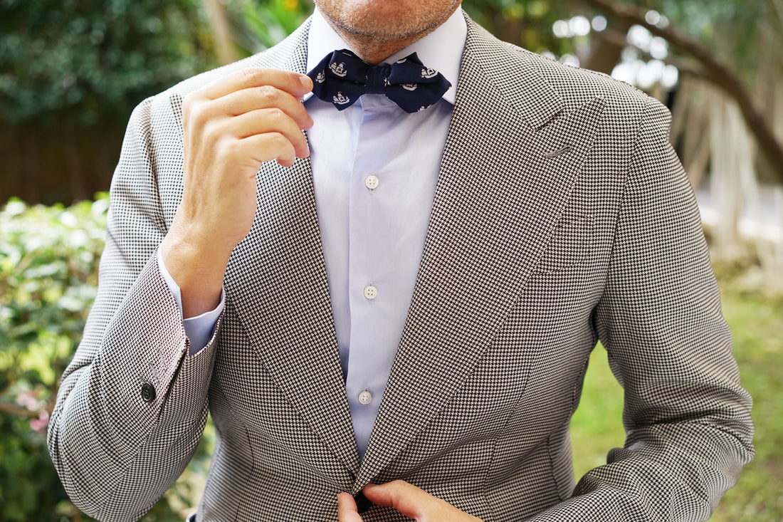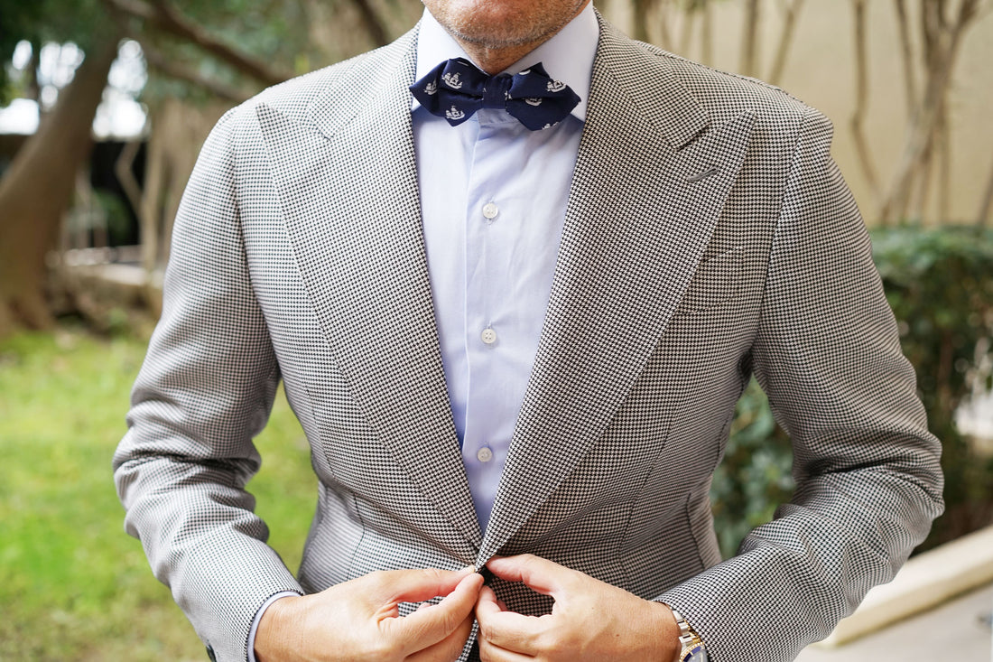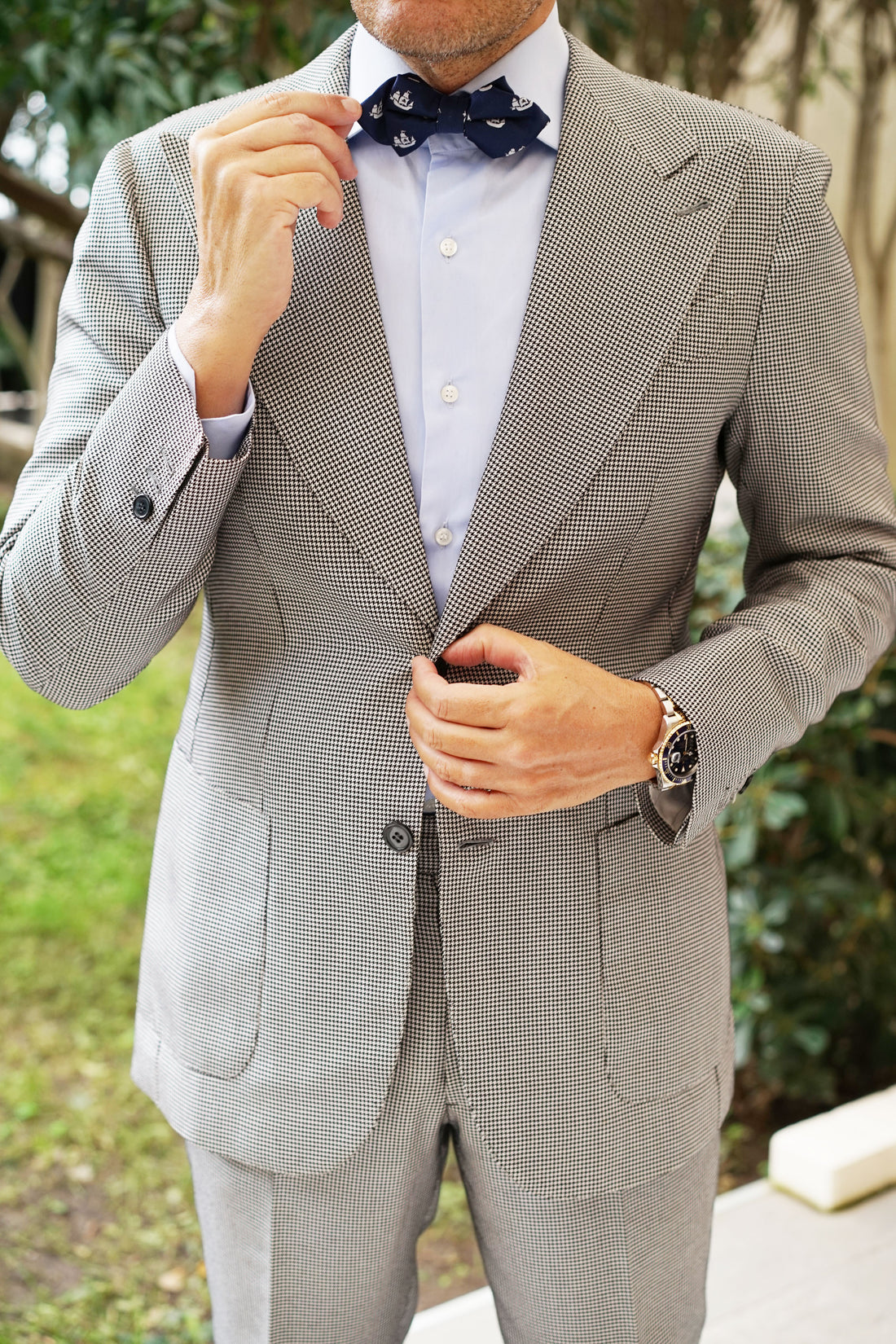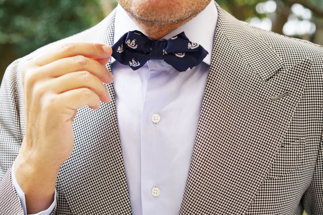 Spun by hand, OTAA's Nautical Pirate Ship Diamond Bow Tie puts a modern spin on the ever-popular pirate motif. The Jolly Roger flag, with its white background and black skull and crossbones was designed to be frightening. All pirates did not use this flag, however. Usually, those sailing in the Spanish Main only flew it. Inspired by the pirates who just wanted to be intimidating enough to cross through the Spanish Seas, this Nautical Pirate Ship Pre tied Diamond Bowtie injects a mischievous spin on the classic Diamond Bow Tie range.