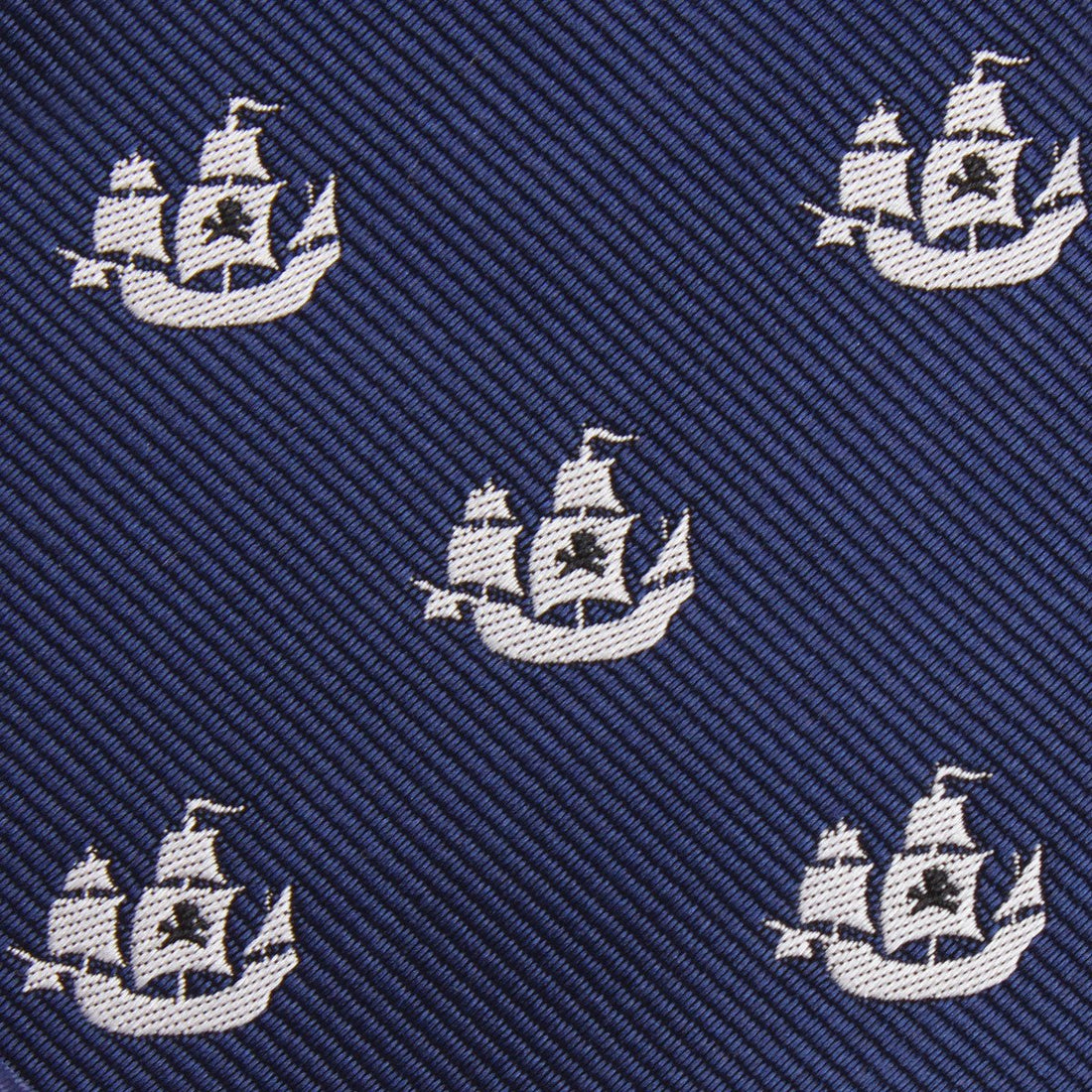 Spun by hand, OTAA's Nautical Pirate Ship Pocket Square puts a modern spin on the ever-popular pirate motif. The Jolly Roger flag, with its white background and black skull and crossbones was designed to be frightening. All pirates did not use this flag, however. Usually, those sailing in the Spanish Main only flew it. Inspired by the pirates who just wanted to be intimidating enough to cross through the Spanish Seas, this Nautical Pirate Ship Handkerchief injects a mischievous spin on the classic Pocket Square range.
