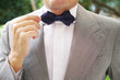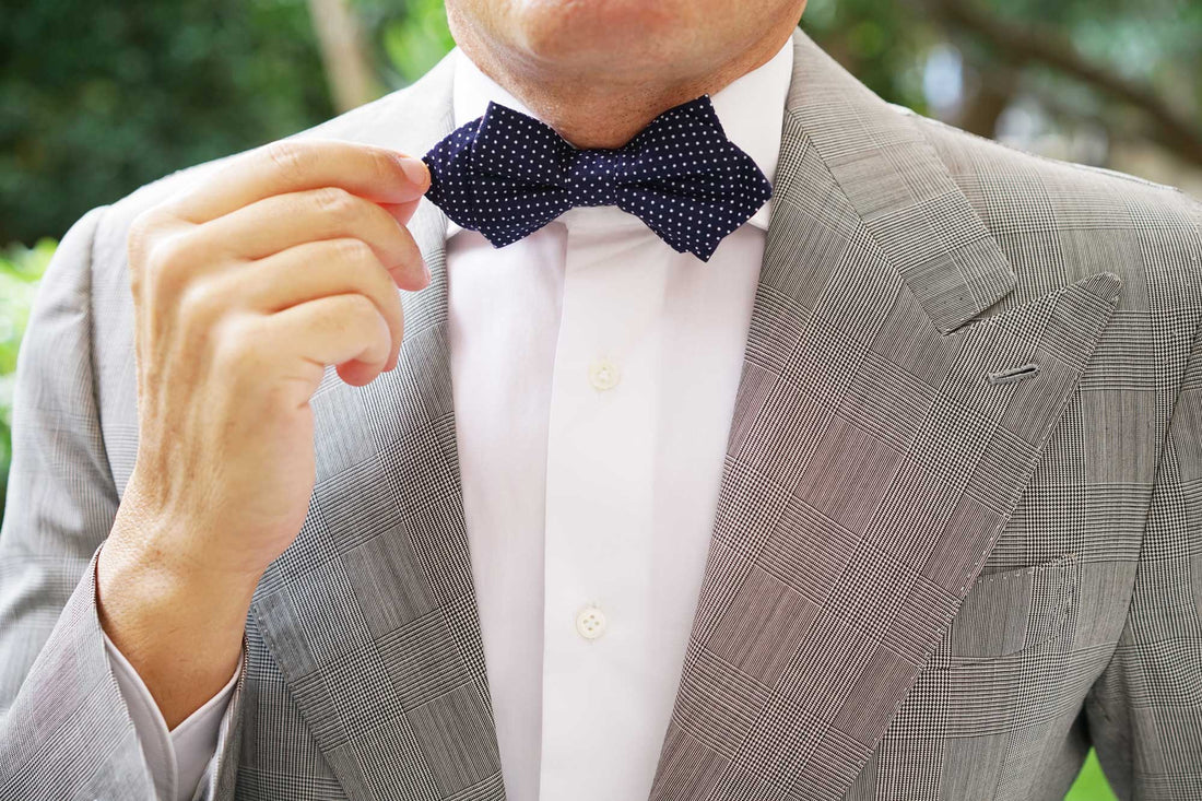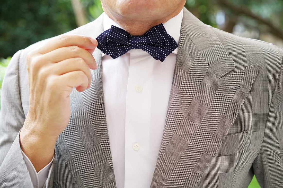 Clean silhouettes and intricate detailing are tenets that define the Navy Blue Cotton with White Mini Polka Dots Diamond Bow Tie. Superbly tailored using the most plush cotton fabric, and then stitched by hand to ensure maximum durability, the Navy Blue Cotton with White Mini Polka Dots Diamond Bow Tie is one of the most comfortable and luxurious bowties you'll own. Designed with busy white polka dots upon a sumptuous navy blue fabric, the colour design of this diamond bowtie is perfectly classic and refined. Let it be your go-to statement when you have formal occasions to dress up for; alternately incorporate it into your boardroom looks for a confident appeal. Designed exclusively by the Brothers at OTAA.
