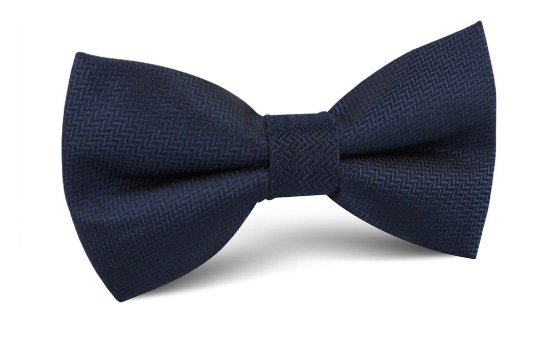 Navy Blue Diagonal Herringbone Bow Tie Fabric