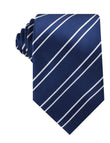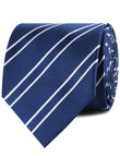 Assembled in-house by hand, the satin fabric is cut, sewn and stitched in stunning detail. Thin ribbons of chromatic white cut across the gentle sheen of the admiral blue body, with multi-directional weavings bestowing an intricate combination of textures on the delicate body. Enticingly balanced with a classic and minimalist design, the Navy Blue Double Stripe Tie is set to be a trend-setting staple in the landscape of timeless formal attire.