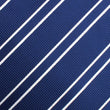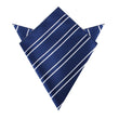 Assembled in-house by hand, the satin fabric is cut, sewn and stitched in stunning detail. Thin ribbons of chromatic white cut across the gentle sheen of the admiral blue body, with multi-directional weavings bestowing an intricate combination of textures on the delicate body. Enticingly balanced with a classic and minimalist design, the Navy Blue Double Stripe Handkerchief is set to be a trend-setting staple in the landscape of timeless formal attire.