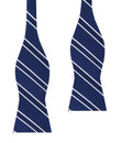 Navy Blue Double Stripe Self Bow Tie Fabric