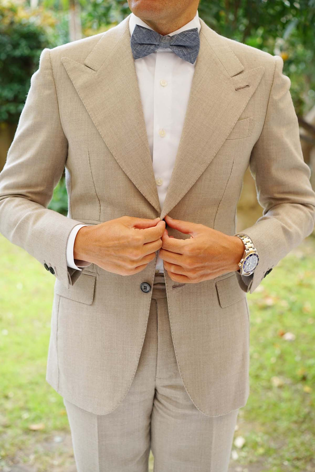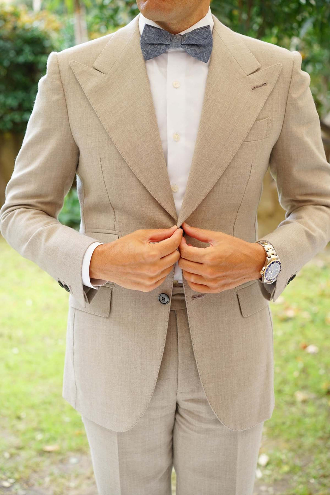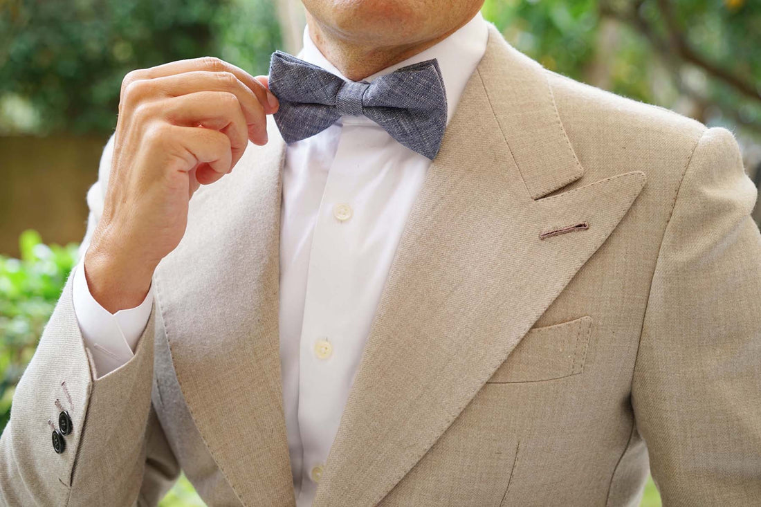 Renowned for its use of sumptuously fine fabrics, OTAA's Navy Blue Linen Chambray Bow Tie is a luxurious piece. The most casual option, this chambray-style is cut for a comfortable fit and finished with mother-of-pearl grains. We'll be layering it over printed shorts in the warmer months and underneath checked blazers in cooler climes.