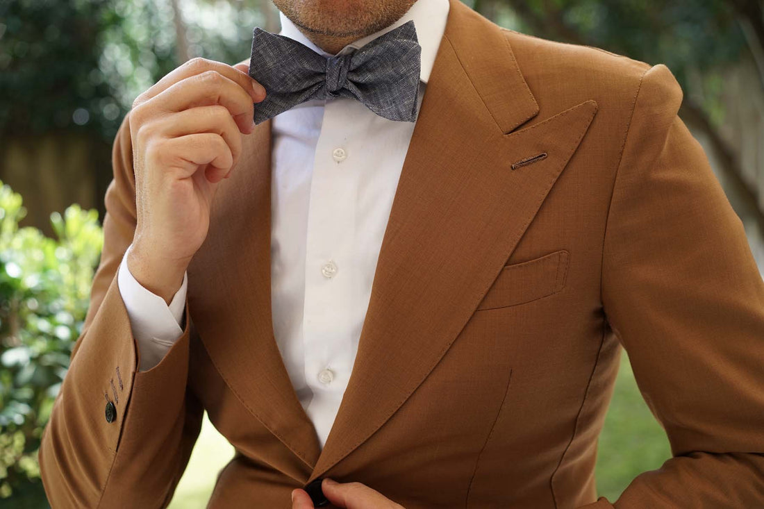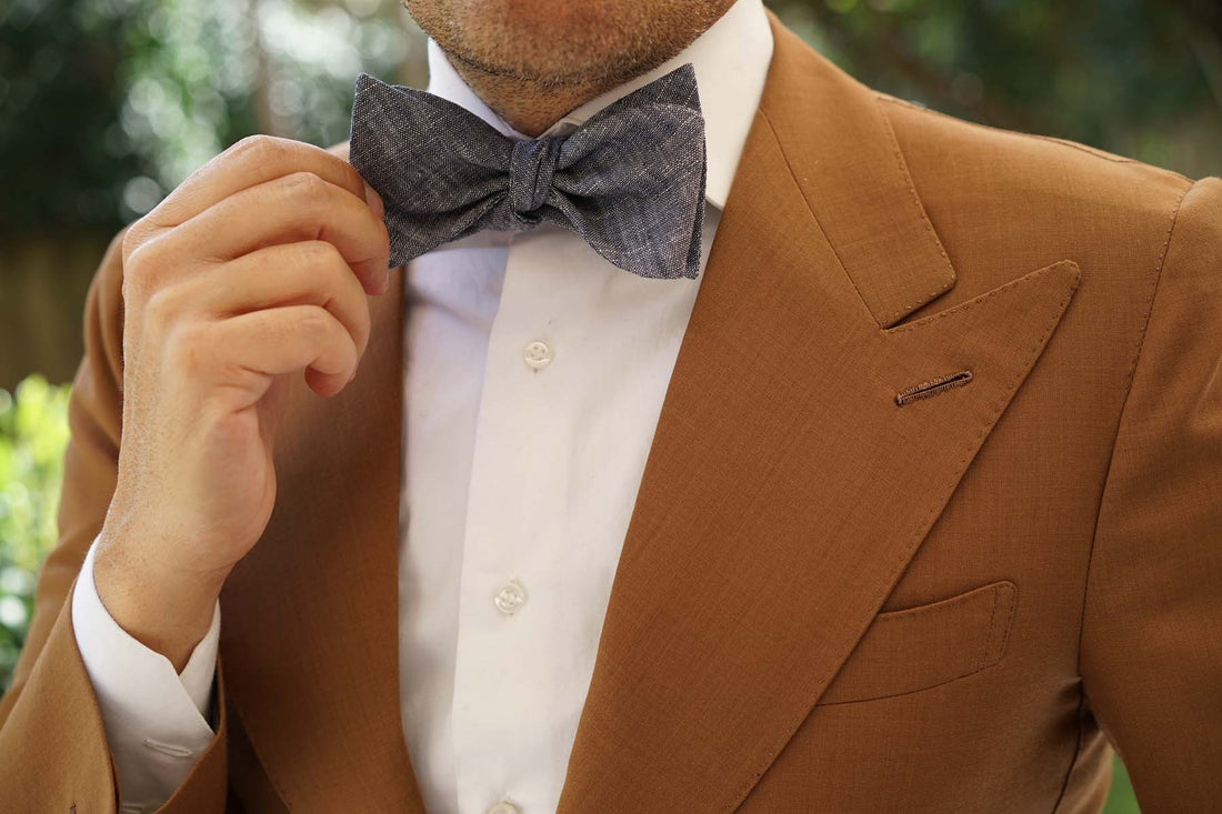 Navy Blue Linen Chambray Self Tie Bow Tie