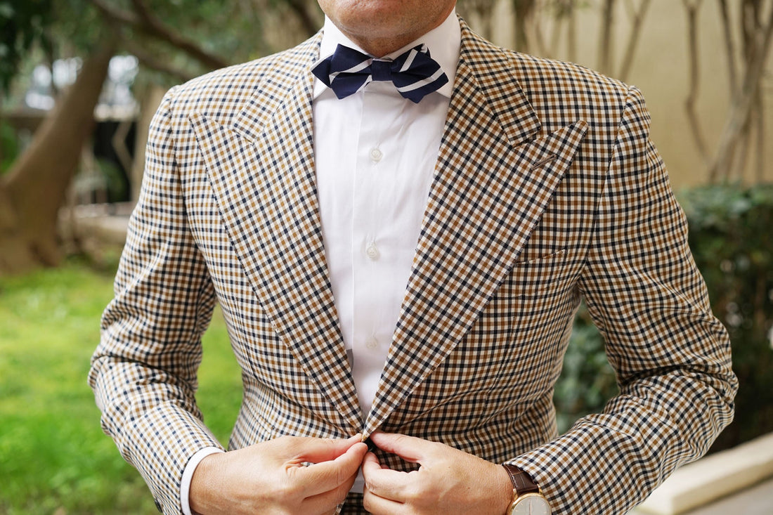 OTAA’s hand-sewn approach to tailoring ensures this diamond pre-tied bowtie delivers a high-quality presence as part of formal ensembles. The elegant diagonal striped pattern is paired with vertical embellishments to give your suits a textural asset. Wear the Navy Blue Pencil Stripe Diamond Bowtie to make a confident statement in the boardroom Designed exclusively by the Brothers at OTAA.