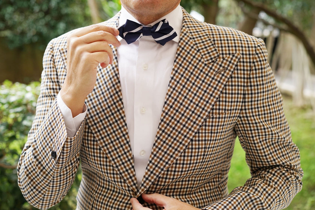 “When we create nautical designs, such as this Navy Blue Pencil Stripe Diamond Bowtie, we like to immerse ourselves in oceanic environments,” the Brothers at OTAA explain as they navigate a rickety boat in the middle of the Atlantic. Inspired by OTAA’s completely fool proof research methods, the Navy Blue Pencil Stripe Diamond Bowtie exudes a nautical sensibility.