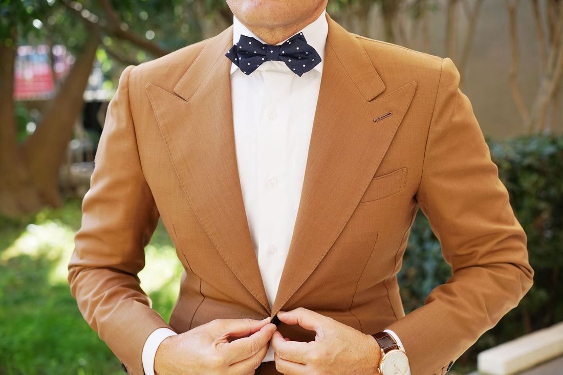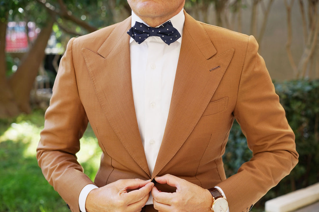 One of OTAA's signature designs; the Navy Blue Polka Dots OTAA Diamond Bow Tie is a flawless staple for elegant dressing. Incorporating all of OTAA's design tenets; quality, tailoring and detail, this Navy Blue Polka Dots OTAA Diamond Bow Tie is a fabulous fruition of excellence. A favoured piece amongst men with sophisticated sentiments, this diamond bowtie makes one of the most versatile and classic staples a man can possibly buy. From its in-house design and handcrafted process to its sumptuous micro fabric; there's no doubt this Navy Blue Polka Dots OTAA Diamond Bow Tie will become one of your favourite wardrobe statements. Wear it to all your formal engagements and laidback social events to achieve a refined aesthetic. Designed exclusively by the Brothers at OTAA.