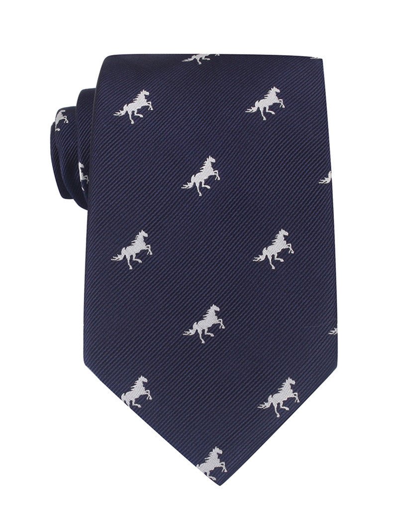 For the true horse lover or equestrian junkie, this Navy Blue Race Horse Necktie is sure to hit the spot. This Navy Blue Race Horse Necktie features a pattern of white horses against a navy background. This necktie will show the world that you take pride in caring for your horse in and out of the racetrack.