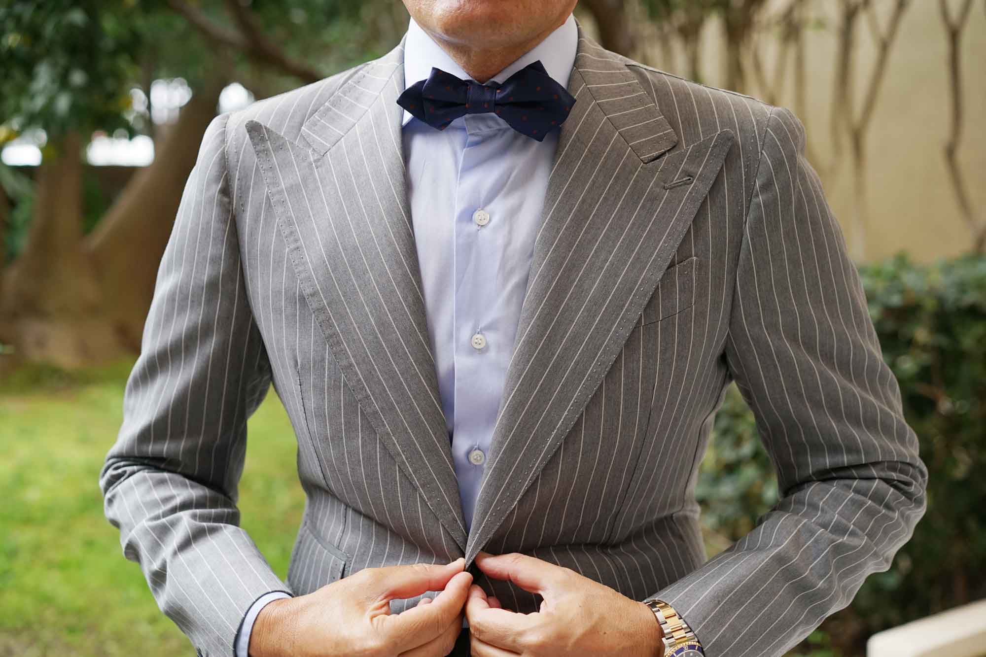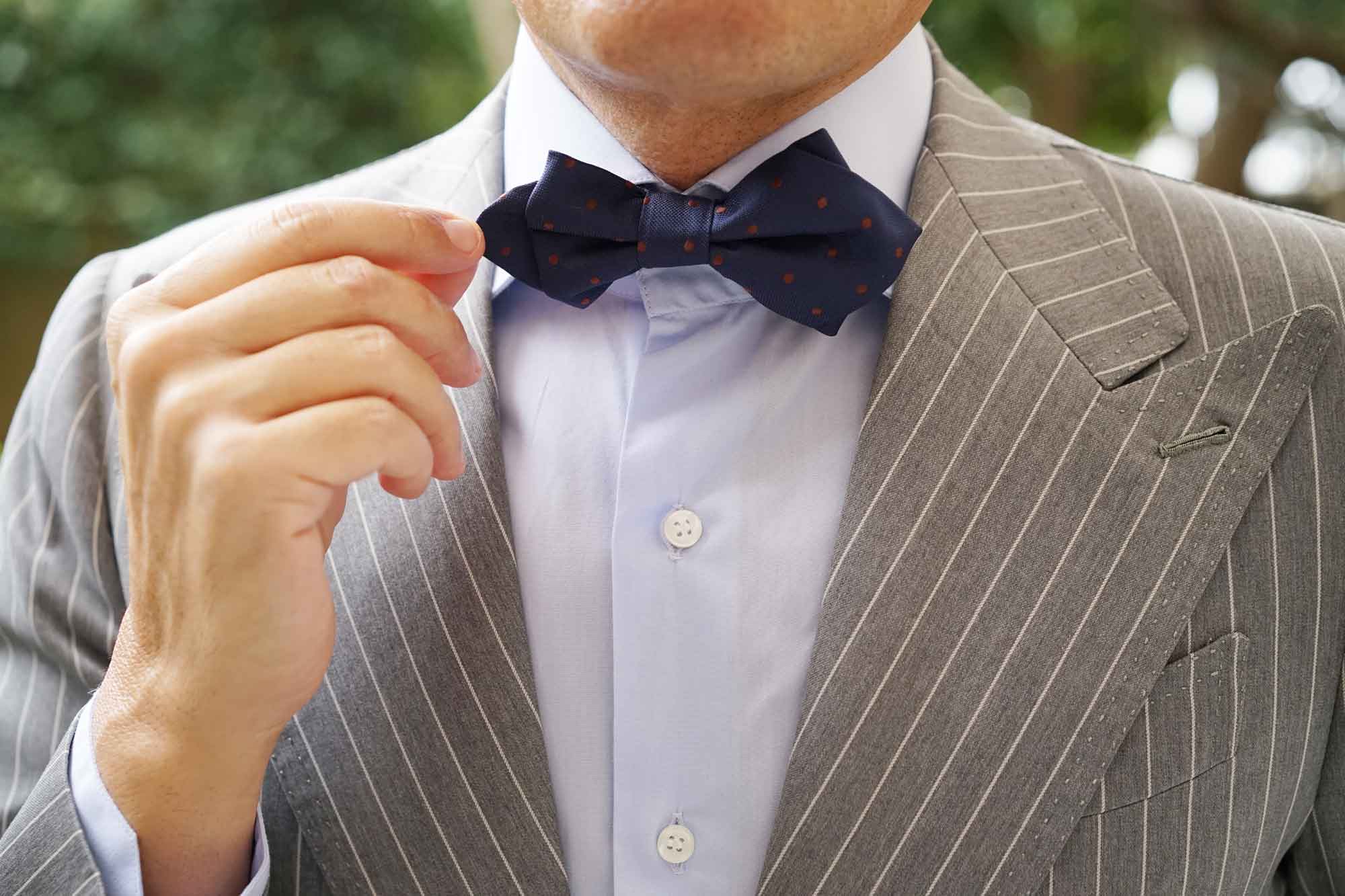 Navy Blue with Brown Polka Dots Diamond Bow Tie