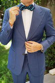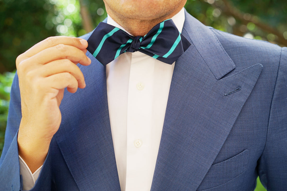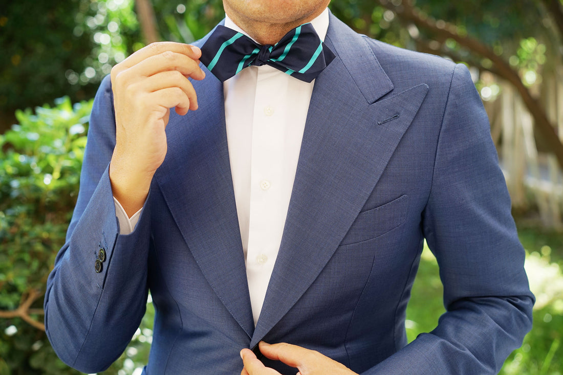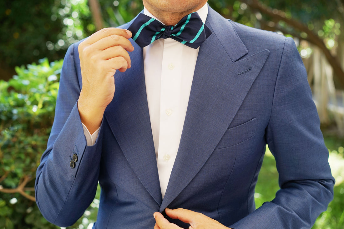 Navy Blue with Striped Light Blue Fabric Self Tie Diamond Tip Bow Tie X457