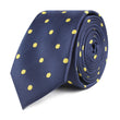 To design this Navy on Large Yellow Dots Skinny Tie, we took a trip to a fancy French museum. We looked at the magnificent Renaissance paintings on the wall and thought, “Wow. That’s way too difficult”, so we then turned to the dusty painting in the corner and thought: “perfect”. It was colourful, eye-catching and not too highbrow; we knew we had to conceptualise it as a brilliant tie design. The Navy on Large Yellow Dots Skinny Tie is the result.