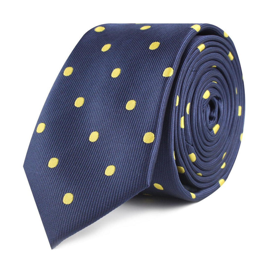 Hand-sewn to perfection using little machine interference, the Navy on Large Yellow Dots Skinny Tie showcases the label's high-quality signature. With a lustrous feel and exquisite texture, this thin tie features a navy palette with ebullient yellow polka dots. Wear this Navy on Large Yellow Dots Thin Tie to give an accomplished tone to formal tailoring. Designed exclusively by the Brothers at OTAA.