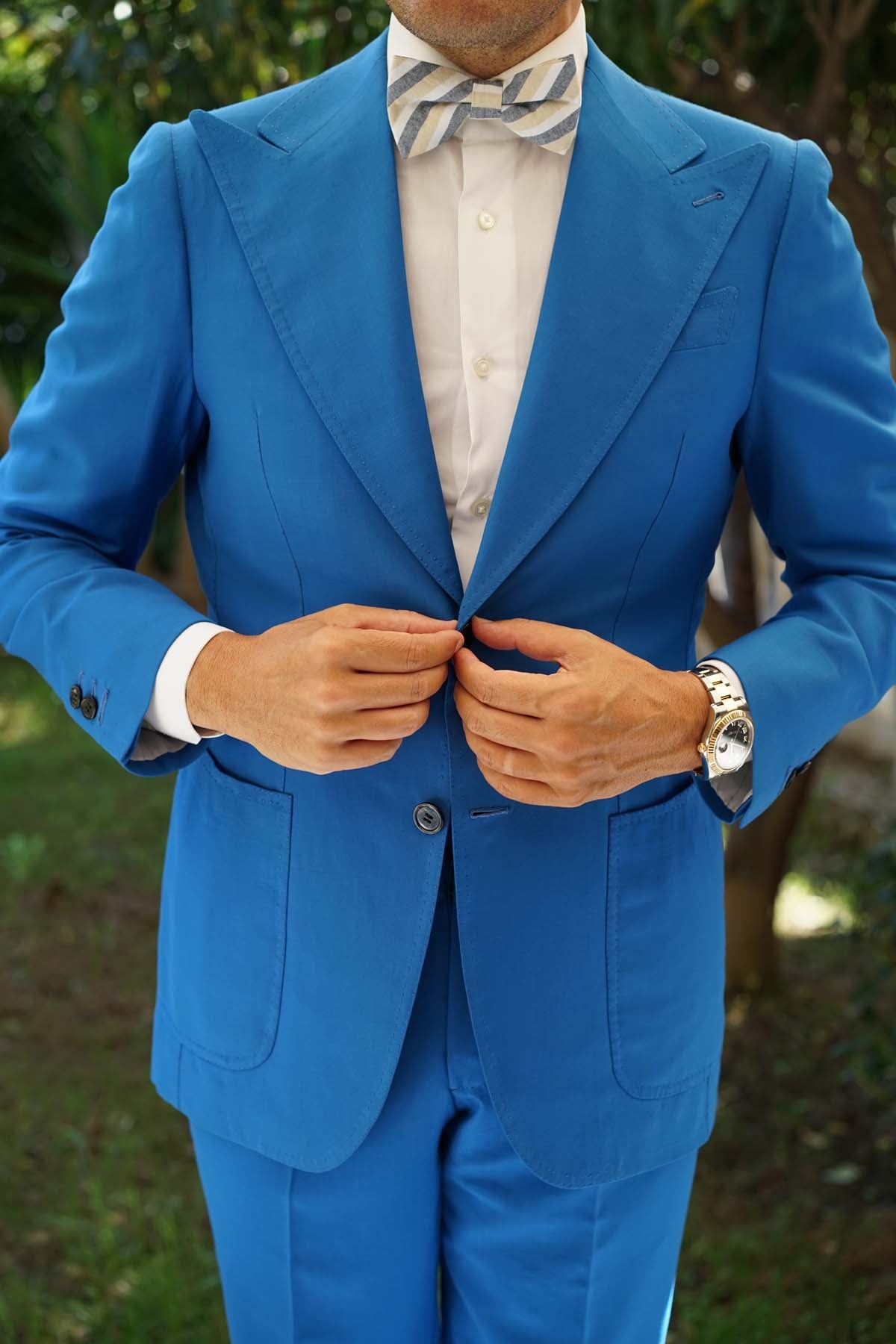 OTAA’s hand-stitched approach to tailoring means this bow tie is smooth to touch and emanates a high-quality presence as part of formal ensembles. The striking diagonal pattern is paired with ebullient white, yellow and blue tones to give you a stand-out option for flamboyant style. Hand-sewn and elegantly constructed, this New York Striped Bow Tie marries superior quality with unabashed style. Designed exclusively by the Brothers at OTAA.