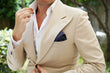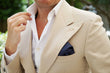 “The Nude Navy Blue Pocket Square is inspired by that time my boat capsized and I was forced to ride dolphins to shore,” an OTAA brother explains as he navigates a rickety boat in the middle of the Atlantic. The blue palette came from the idea that when his boat was underwater, all he could see was an endless ocean of deep navy blue, he thought; “that’s what I’ll do if I ever get back to shore: design a nude navy blue handkerchief. People will dig it and I'll probably land a 60 Minutes interview!”