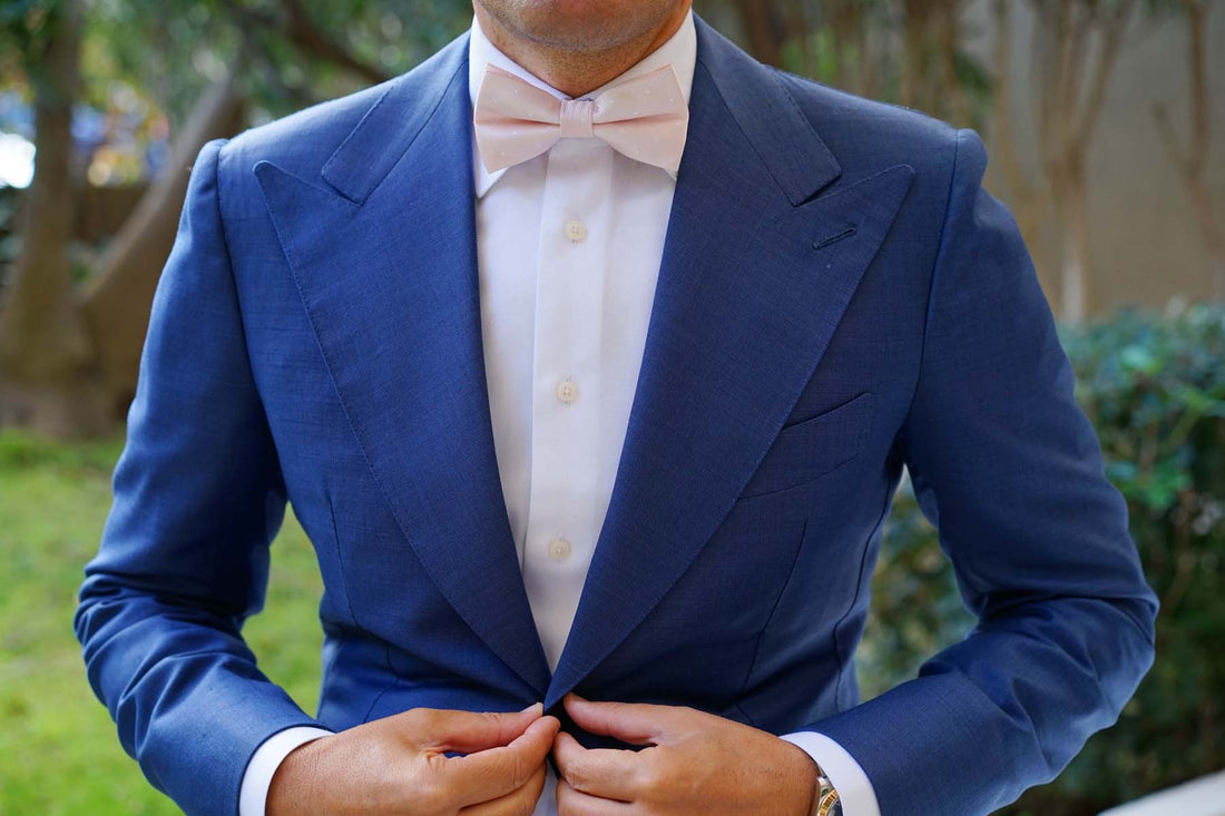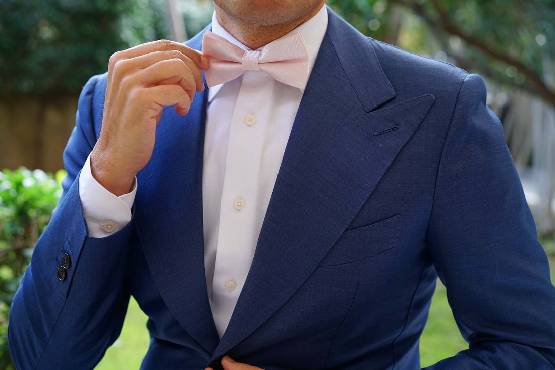 Crafted by hand and heavenly detailed, OTAA’s Nude Pink Polka Dots Bow Tie offers a flawless staple. The lustrous satin material of this pre-tied bowtie is superbly complemented by artisanal white polka dots; giving your outfits a flourishing perspective. The elegant nude pink palette offers a fanciful twist to classic styles and is impeccably finessed with diagonal lined textures. This Nude Pink Polka Dots Bow Tie offers the perfect staple for formal dressing; alternately add it to your work-week roster for an accomplished arrangement. Designed exclusively by the Brothers at OTAA.