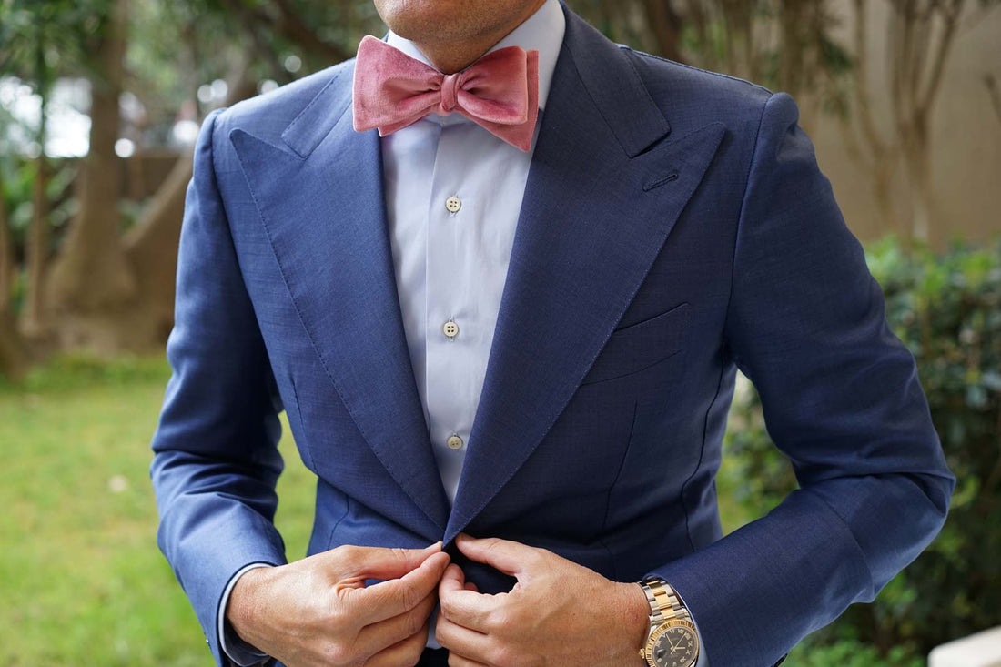 Classically refined, the Nude Pink Velvet Self Tie Bow Tie adds a romantic perspective to your formal styles. The most popular men’s bow tie for weddings, the Nude Pink Velvet Untied Bowtie exudes an elegant soft pink palette. Designed in-house and superbly handcrafted from a plush velvet, the Nude Pink Velvet Self Tie Bow Tie immaculately combines a perspective of durability with unsurpassed luxury. Let its smooth, lightly tufted velvet fabric bring a wealth of comfort and texture to your formal styles. The Nude Pink Velvet Untied Bowtie will pair superbly with black, navy and grey suits. Designed exclusively by the Brothers at OTAA.
