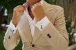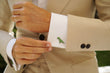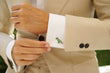 Includes a small cylinder at the back that rotates 90 degrees to hold the cufflink in place