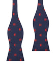 This Ozy The Squid Self Tie Bow Tie is superbly decorated with hand-stitched squids. The red and navy blue colour palette makes this self tie bow tie a perfect staple to inject colour into your looks. With a hand-tailored design and plush navy material, this Ozy The Squid Untied Bow Tie demonstrates OTAA’s dedication to superior quality. Designed exclusively by the Brothers at OTAA.
