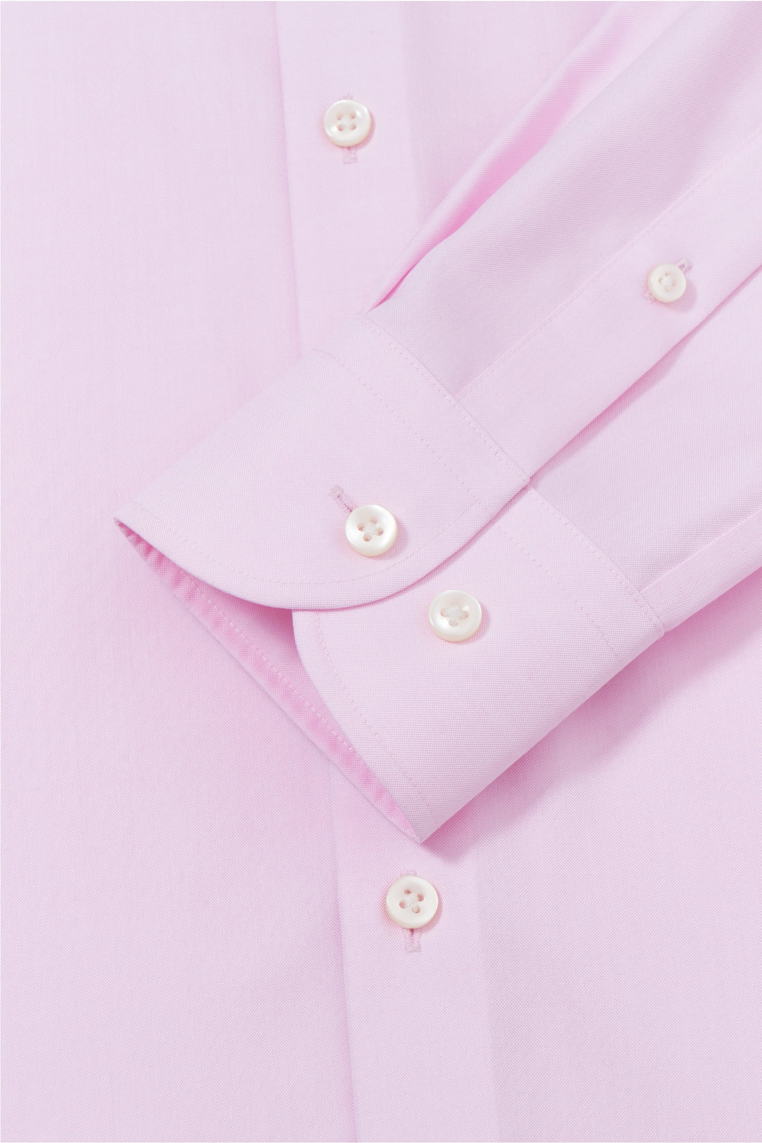 Designed for the modern man, this shirt features an in-built soft collar stay and adjustable button cuffs, ensuring a crisp and polished look without the hassle of ironing. The durable fabric is easy to care for, making it ideal for frequent use and washing. The clean finish without top stitch and the rounded edges add a touch of finesse to this already impeccable shirt. Embrace the perfect combination of luxury and convenience with the Pacelli Pink Oxford Easy Care Shirt, a must-have addition to your wardrobe.
