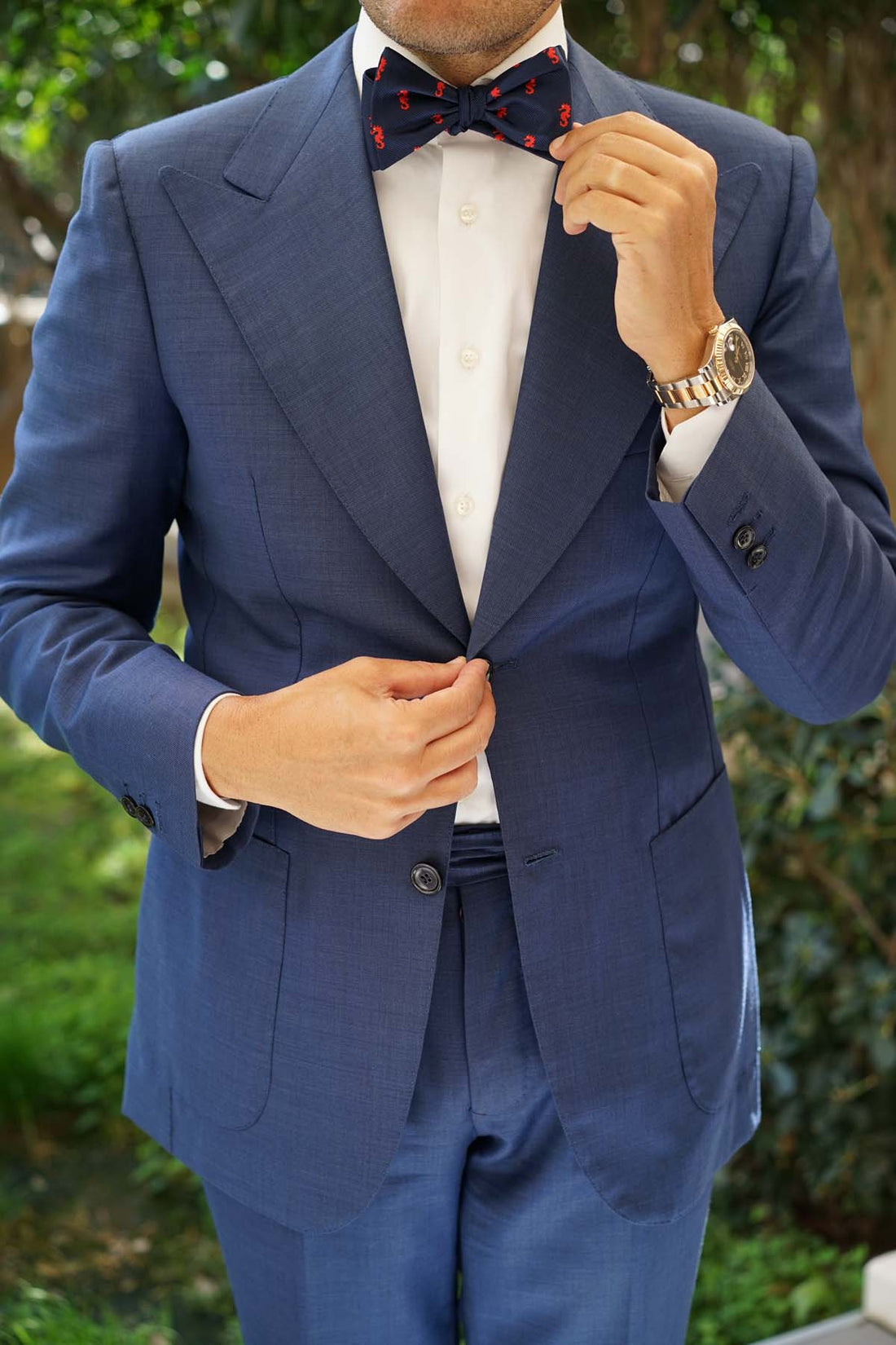 The Brothers at OTAA prize world-class tailoring, which is why this Pacific Seahorse Untied Bow Tie is constructed by hand from an exceptional navy blue fabric. The ebullient red and navy hues ensures this self tie bow tie brings an eye-catching staple to your daily ensembles. Wear this Pacific Seahorse Self Tie Bow Tie to accomplish a playful accent in your tailoring. Designed exclusively by the Brothers at OTAA.