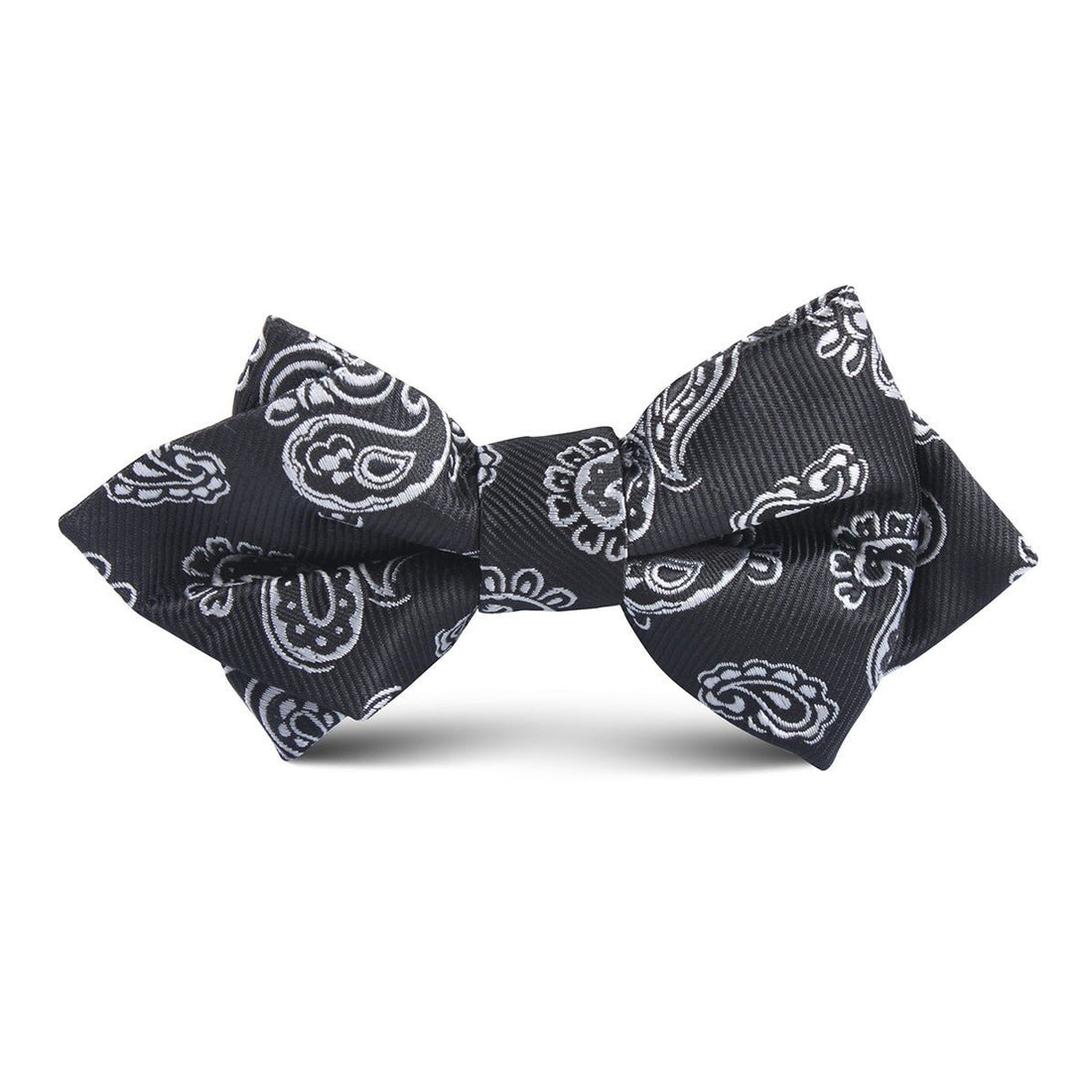 Uniquely designed and crafted by hand, the Paisley Coal Black Kids Diamond Bow Tie is the cornerstone staple for gentlemen who seek true refinement. The Brothers at OTAA prize paisley designs, and this boys diamond bow tie went through a process of hand drawing, tailoring and hand-stitching before being parcelled up for you. The indulgent black palette superbly complements the ebullient white paisley stitching that's embossed throughout. Worn by the kings of the Persian Empire, and now by you; an incredibly sleek gentleman. Designed exclusively by the Brothers at OTAA.