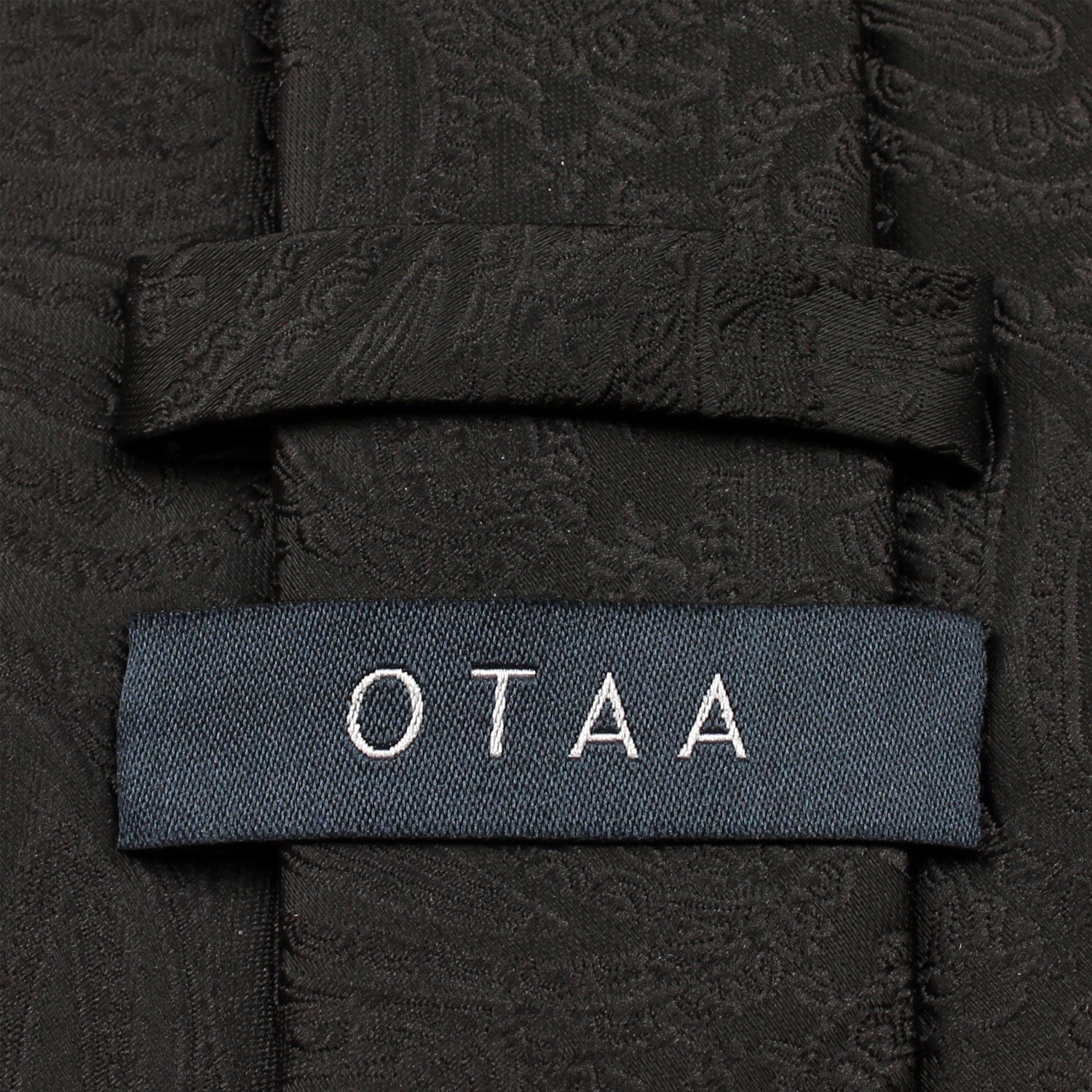 The midnight black Necktie is designed by OTAA and has large floral patterns spread throughout. The black paisley patterns are etched within the design of the fabric making it for a unique styling for any gentleman.