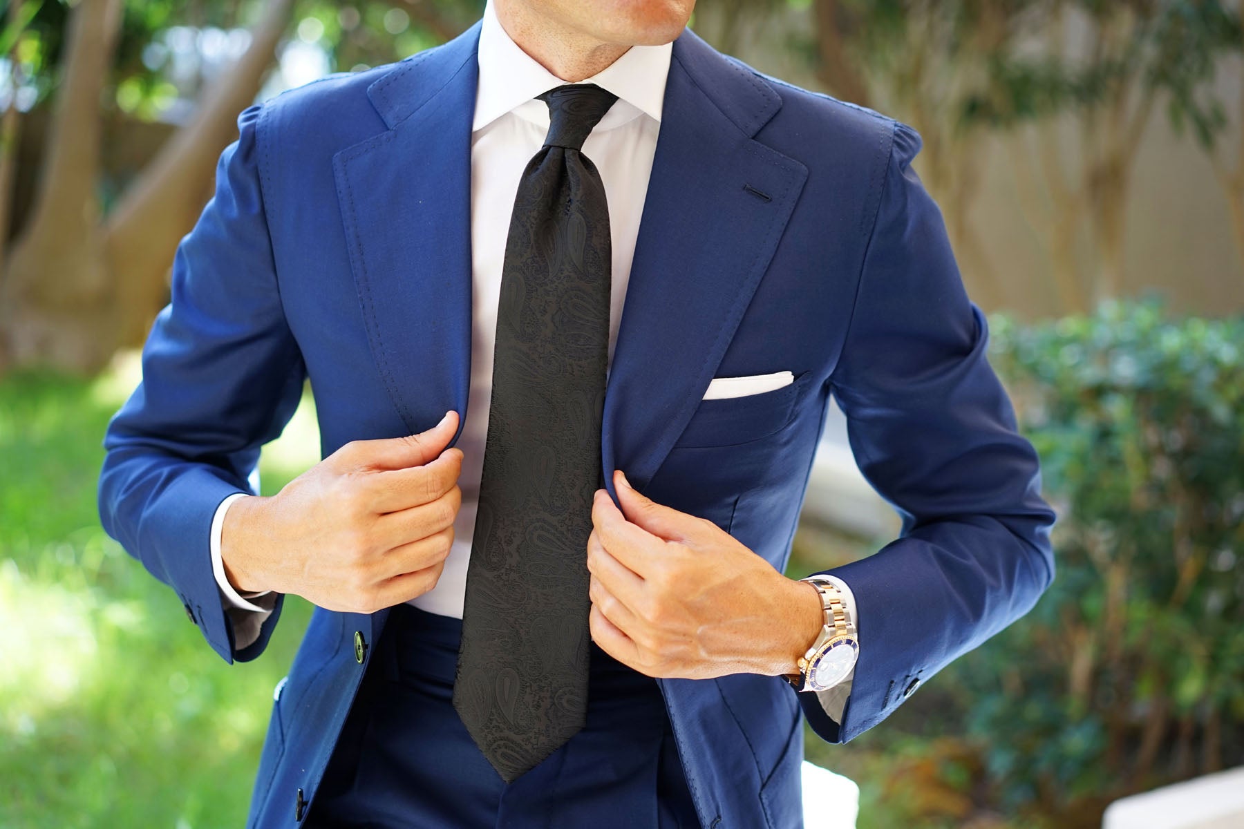 A classic Paisley Midnight Black Necktie is a sartorial essential and we especially like the intricate detailing of the paisley pattern. Tailored for a fit that works especially well on a blazer or suit jacket, this style is trimmed with black grosgrain paisley. Try it worn open over a collar neck or layer it under a blazer.