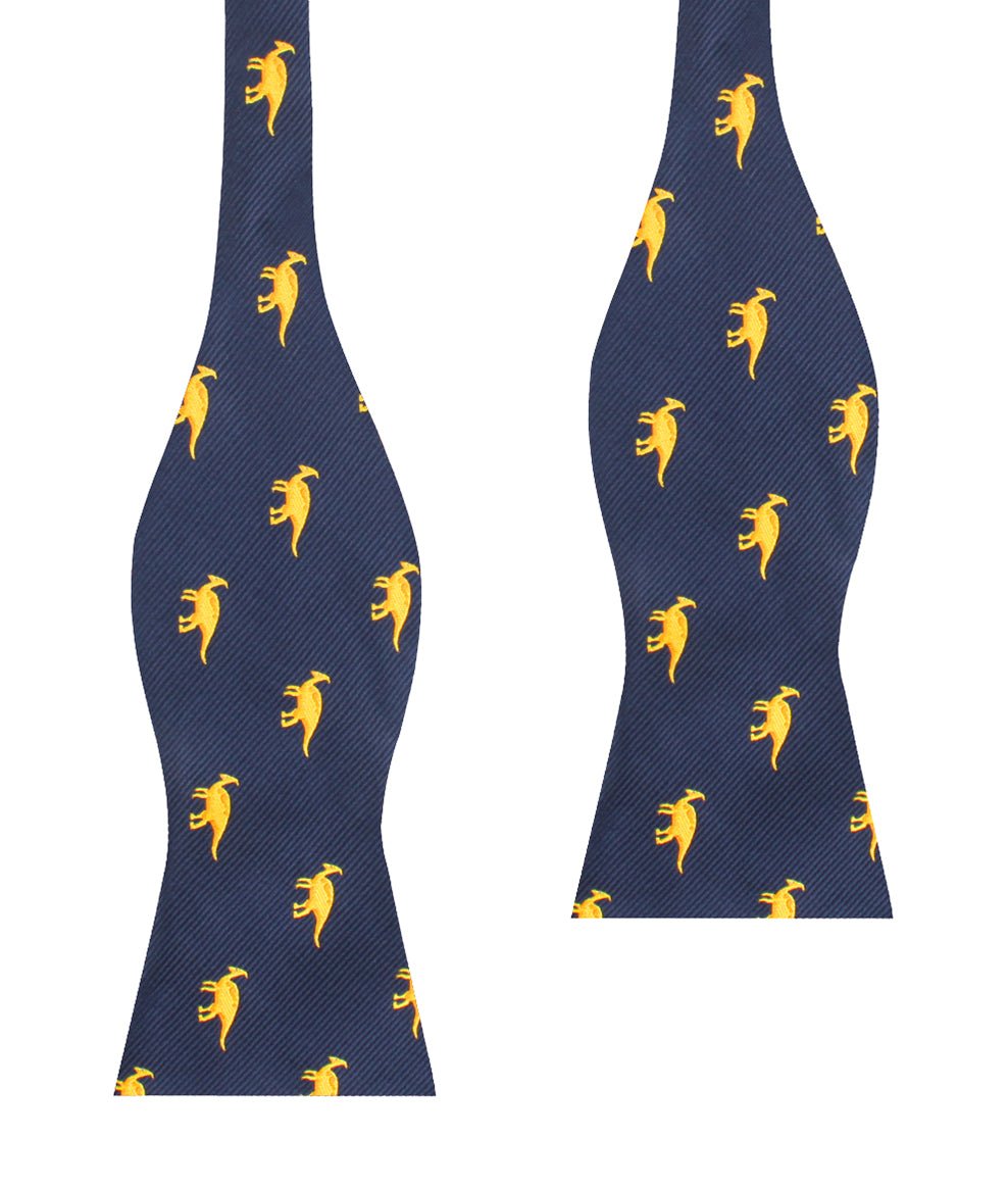 Superbly decorated with an intricate dinosaur design, the Parasaurolophus Dinosaurs Self Tie Bow Tie is finessed with a yellow and navy blue palette. With elegant hand-stitched tailoring and luxuriously plush fabric, this untied bow tie effortlessly marries style with a high-quality sensibility. Let the striking diagonal lines add a textured tone to your work-week looks. Designed exclusively by the Brothers at OTAA.