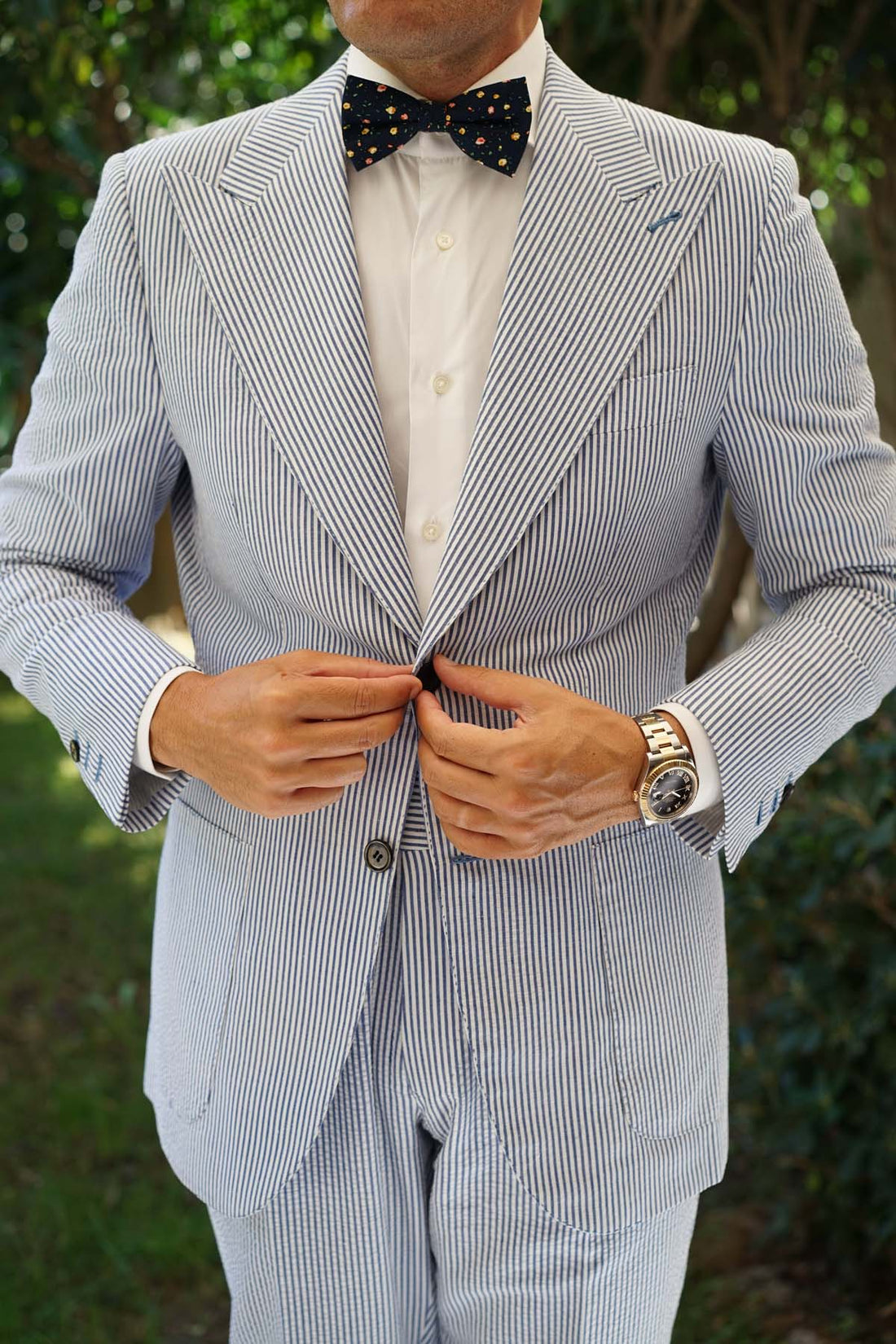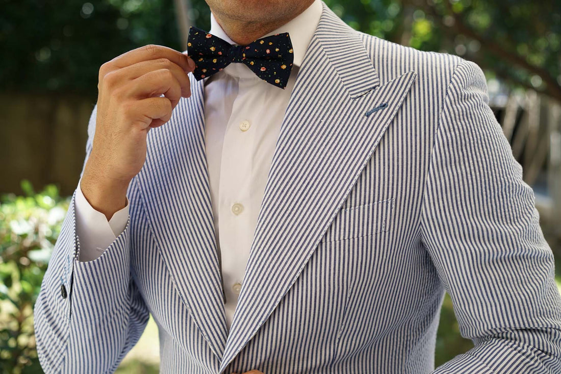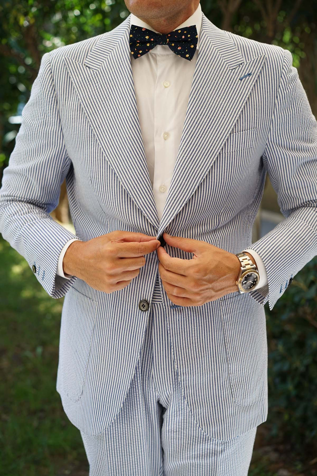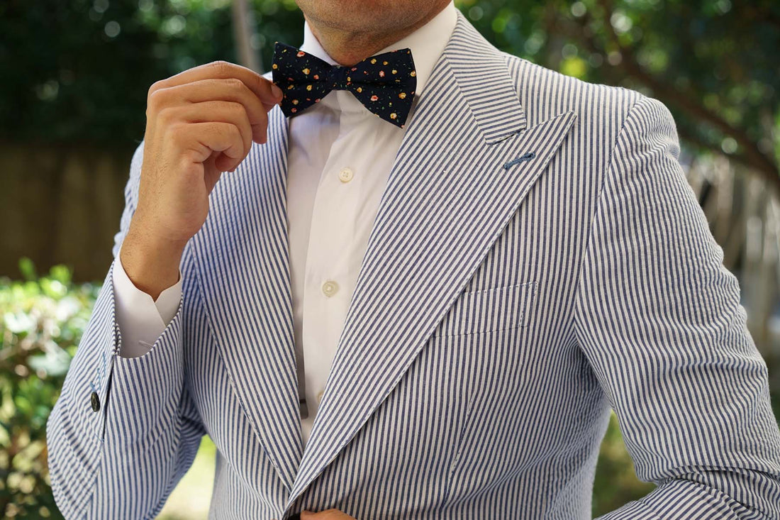 The elegant floral motifs of this pre-tied bowtie will punctuate your tailored looks with a romantic accent. The navy blue background is superbly complemented by pink, yellow and green hues in a lustrous rose design. Crafted by hand and tailored to perfection, the Paris Floral Bow Tie luxuriously embodies the label’s high-quality philosophy. Add it to your evening wardrobe to achieve an accomplished style.