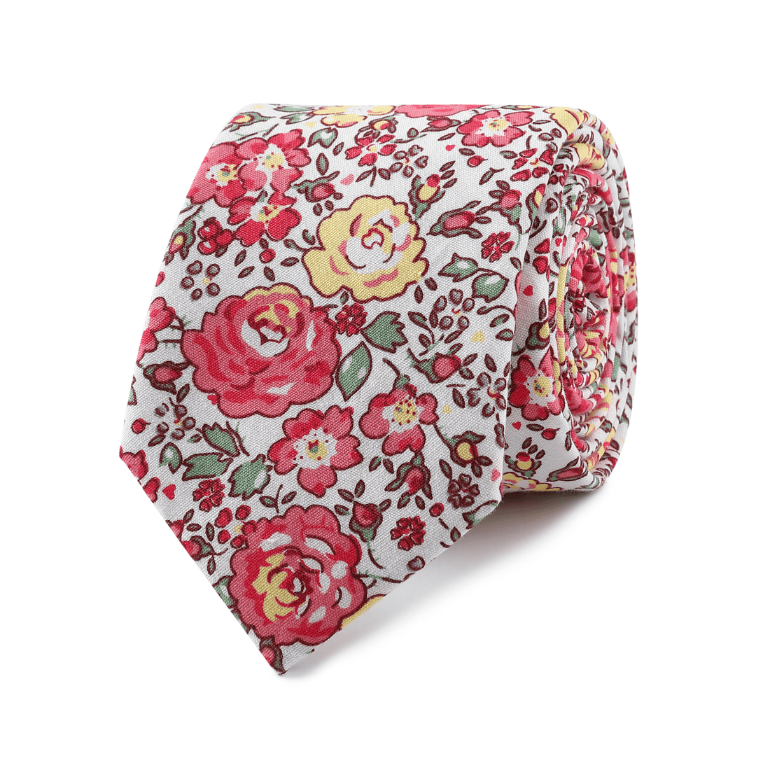 The Parisian Rose Garden Skinny Skinny Tie brings a burst of romance and charm to your outfit, with its vibrant mix of red, pink, and yellow roses set against a soft white backdrop. Inspired by the elegance of Parisian gardens, this Skinny Tie captures the timeless beauty of florals with a lively and refreshing twist. Crafted from premium cotton, it offers both a luxurious feel and all-day comfort.