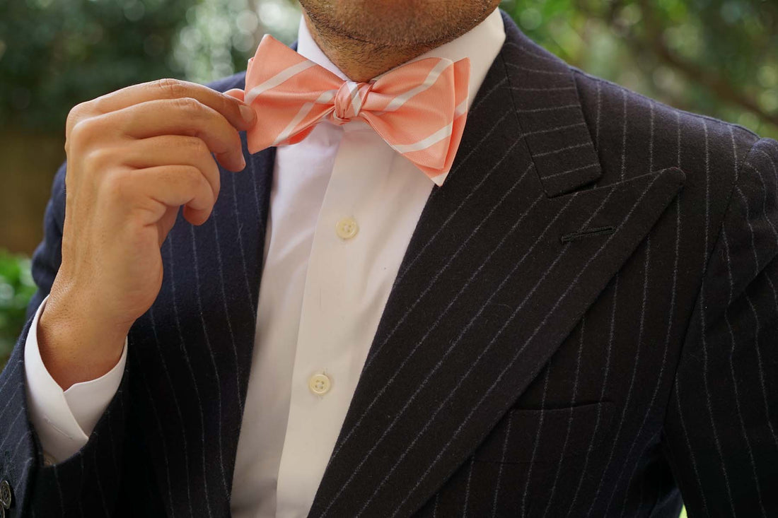 Peach Striped Self Tie Bow Tie