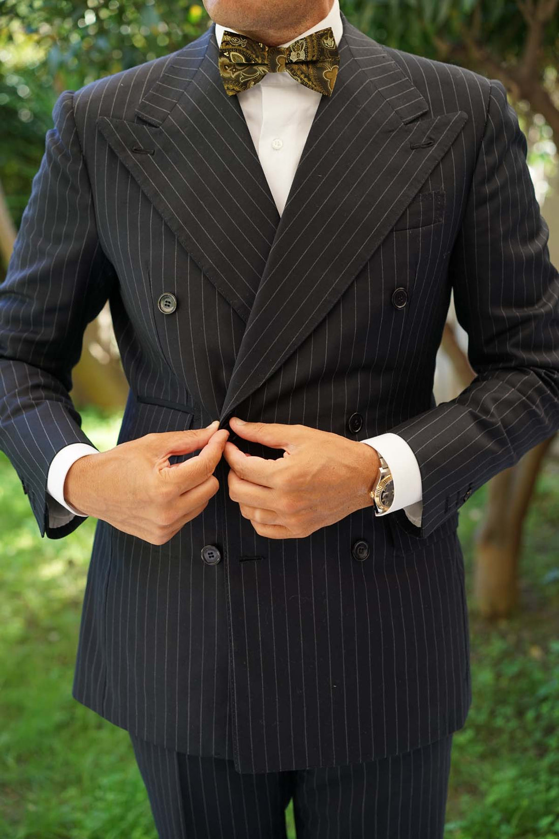 Elegantly designed and crafted by hand, OTAA’s Persian Paisley Brown Bow Tie makes an exquisite statement. Paisley patterns originated in Ancient Persia in the 16th century and were used to decorate the crowns and court garments of nobility. The floral motif was introduced during the Sassanid dynasty and was worn to communicate strength. This Persian Paisley Brown Bow Tie was designed to give a lavish accent to your formal tailoring.