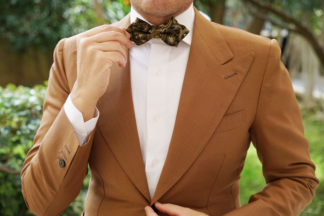 Elegantly designed and crafted by hand, OTAA’s Persian Paisley Brown Diamond Bowtie makes an exquisite statement. Paisley patterns originated in Ancient Persia in the 16th century and were used to decorate the crowns and court garments of nobility. The floral motif was introduced during the Sassanid dynasty and was worn to communicate strength. This Persian Paisley Brown Diamond Bowtie was designed to give a lavish accent to your formal tailoring.