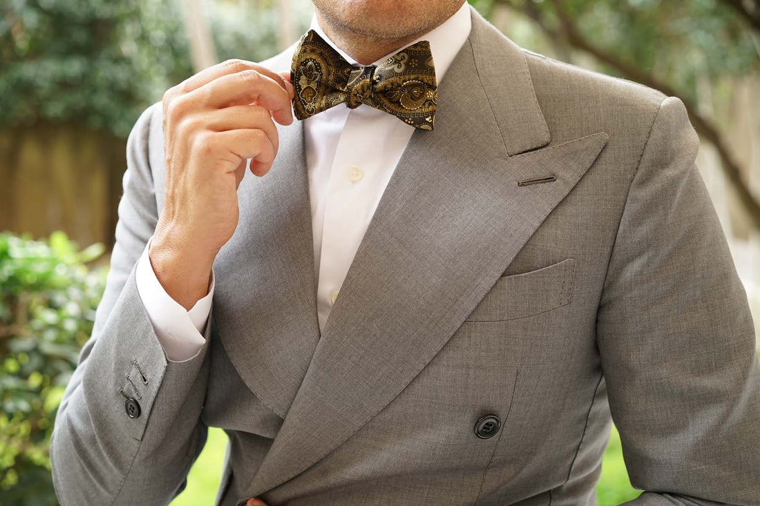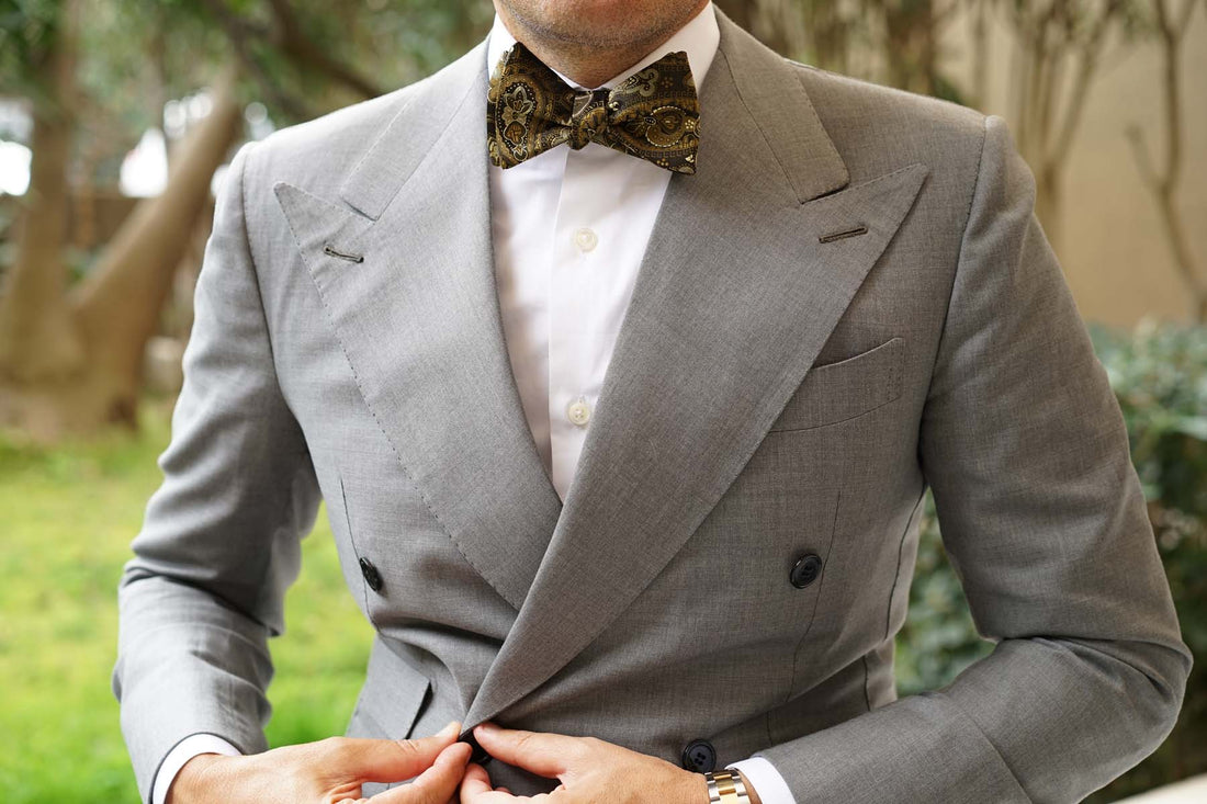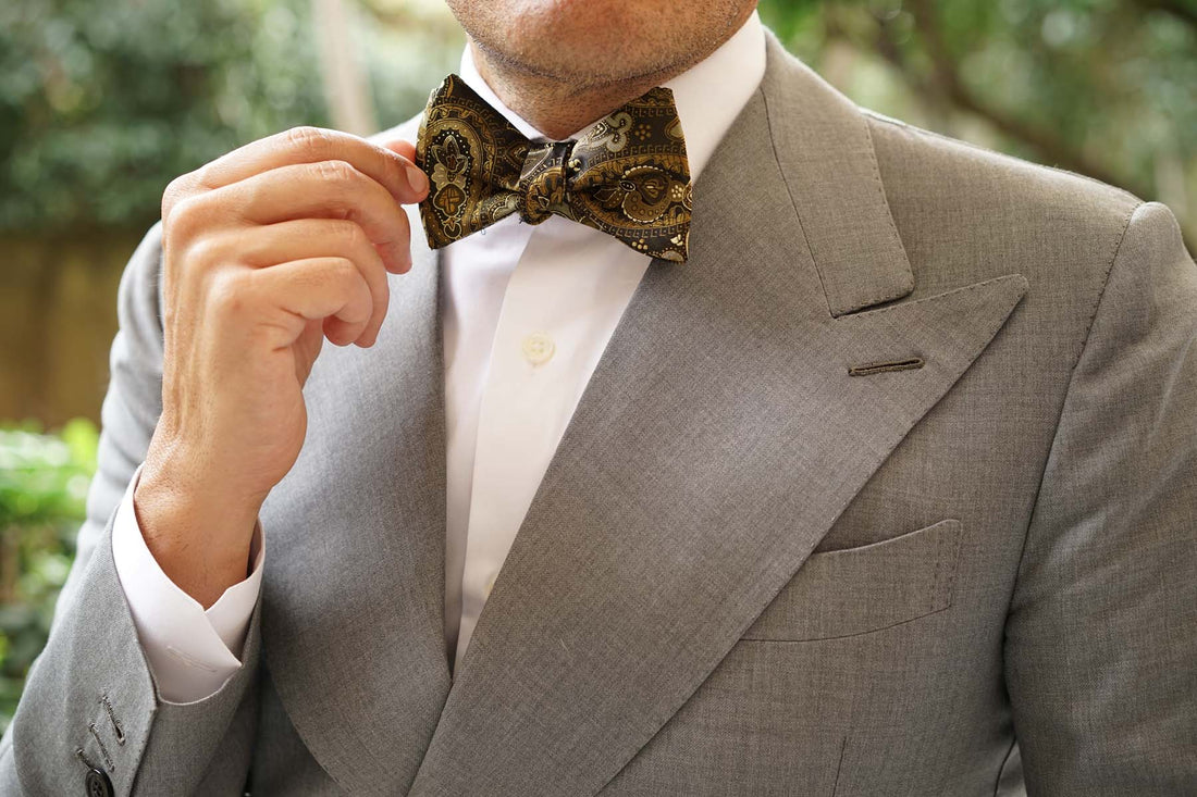 Elegantly designed and crafted by hand, OTAA’s Persian Paisley Brown Self Tie Bow Tie makes an exquisite statement. Paisley patterns originated in Ancient Persia in the 16th century and were used to decorate the crowns and court garments of nobility. The floral motif was introduced during the Sassanid dynasty and was worn to communicate strength. This Persian Paisley Brown Self Tie Bow Tie was designed to give a lavish accent to your formal tailoring.
