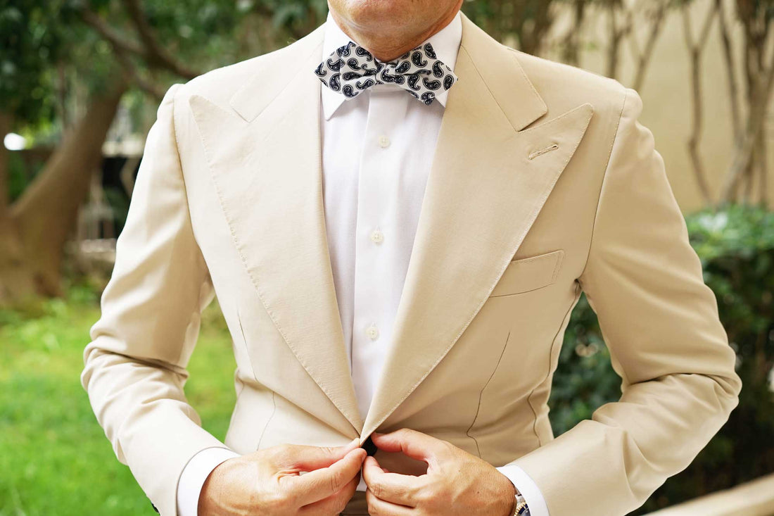 With a hand-sewn approach to tailoring, this in-house design emanates a high quality presence as part of formal outfits. The white and navy blue palette provides a fresh appearance that’s beautifully complemented by artisanal paisley teardrops. Smooth to the touch and elegantly constructed, the Picasso White on Blue Paisley Diamond Bowtie is a demonstration of superior tailoring. Designed exclusively by the Brothers at OTAA.