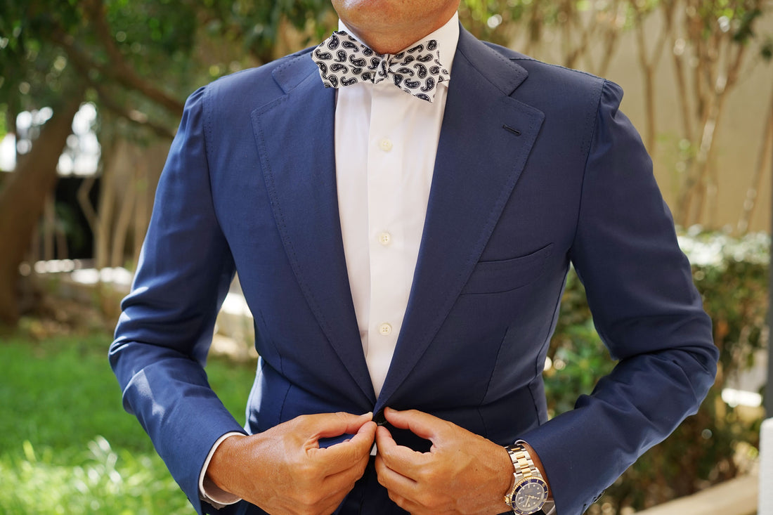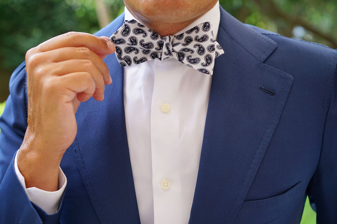 With a hand-sewn approach to tailoring, this in-house design emanates a high quality presence as part of formal outfits. The white and navy blue palette provides a fresh appearance that’s beautifully complemented by artisanal paisley teardrops. Smooth to the touch and elegantly constructed, the Picasso White on Blue Paisley Diamond Self-Tie Bow Tie is a demonstration of superior tailoring. Designed exclusively by the Brothers at OTAA.