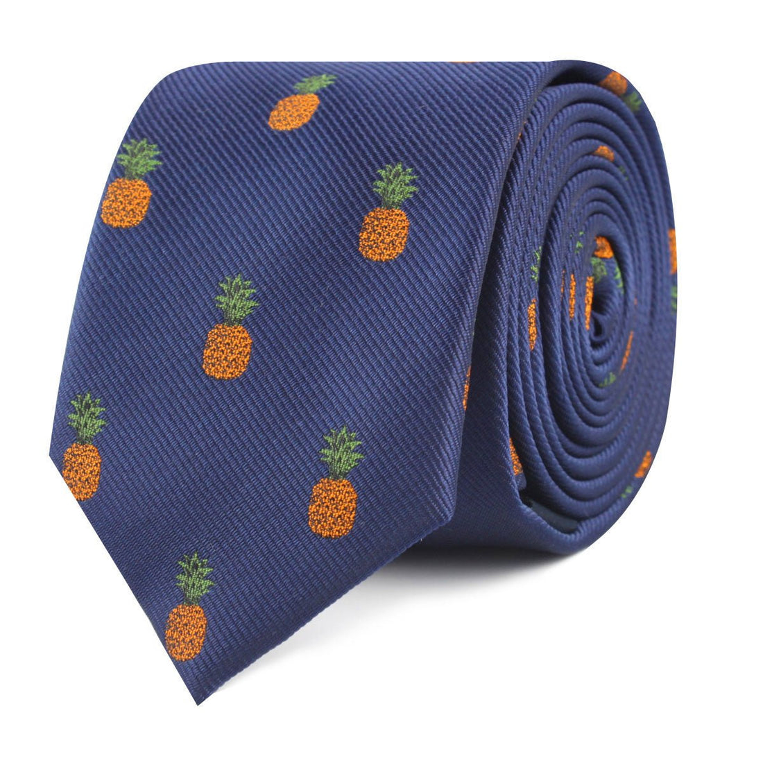 Give a relaxed look to your daily outfits with this Pineapple Skinny tie. In the Caribbean, the pineapple became associated with the return of ships from extended voyages. Inspired by the delicious fruity symbol, OTAA's vibrant Pineapple Skinny tie will bring your wardrobe some seasonal flair as well as a go-to daytime look.