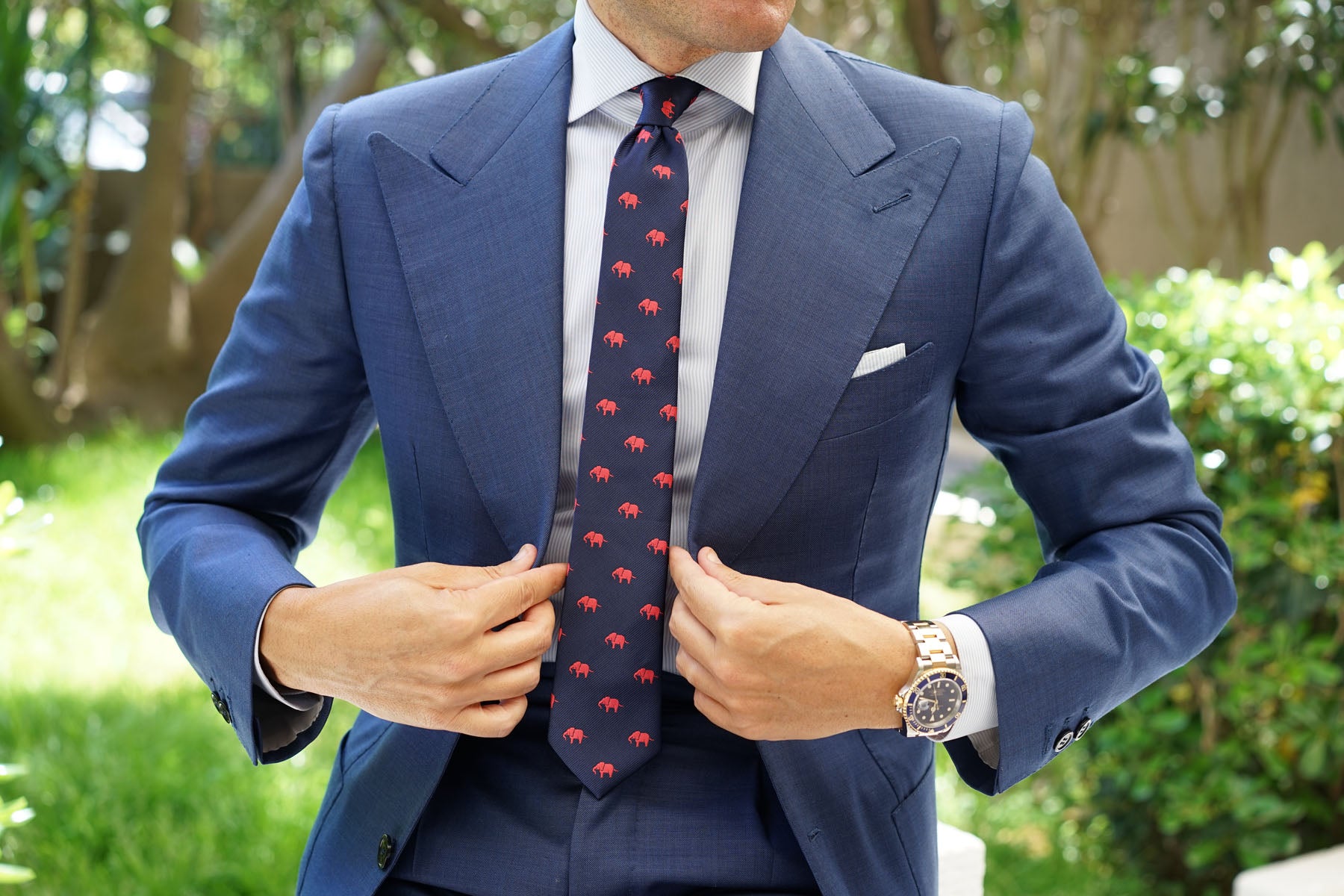 The Pink Elephant Skinny Tie by OTAA adds an exotic detail to your stride. Whilst it may seem that elephants and humans don’t have much in common, this simply isn’t true. Elephants are known to prefer one tusk over another, just like humans usually prefer writing with one hand over the other. The Pink Elephant Skinny Tie is designed to bridge the gap of understanding between elephants and humans, because after all - we’re both mammals who greet each other by shaking our hands (or trunks).