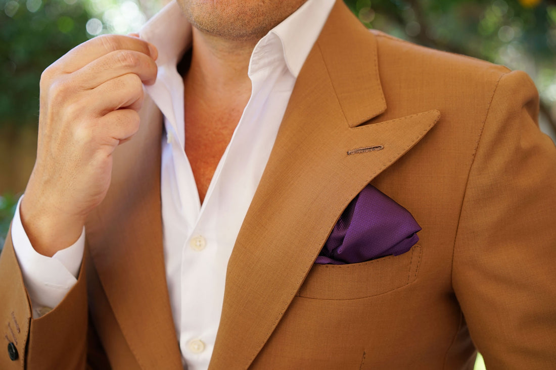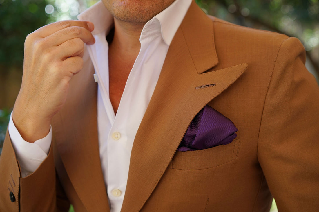 The high-quality satin is woven with subtle detail and finished with a delicate shimmer. The weave of the fabric being arranged in diagonally stroked beveling to create a finely textured look, pleasingly smooth to the touch. The currant thread is accentuated by an understated black base that lends depth to the shimmering surface. The Plum Purple Weave Handkerchief will add a dash of maverick verve to your formal ensemble.