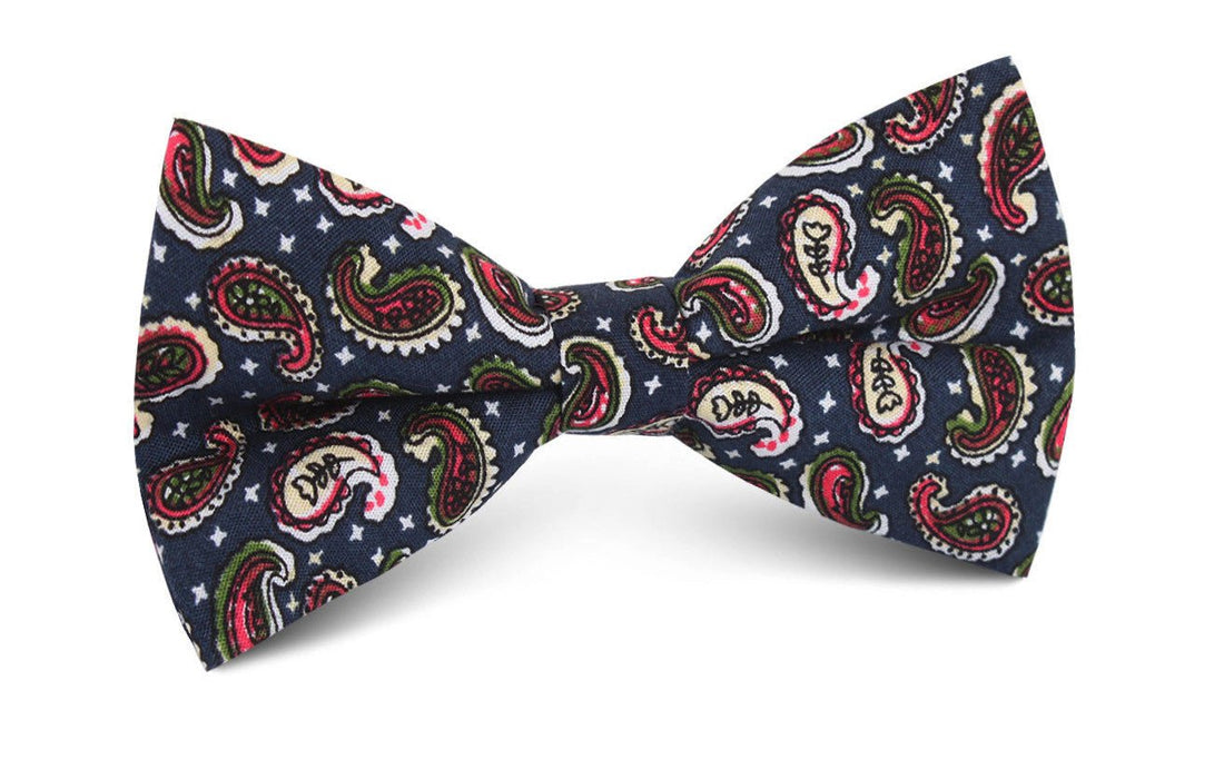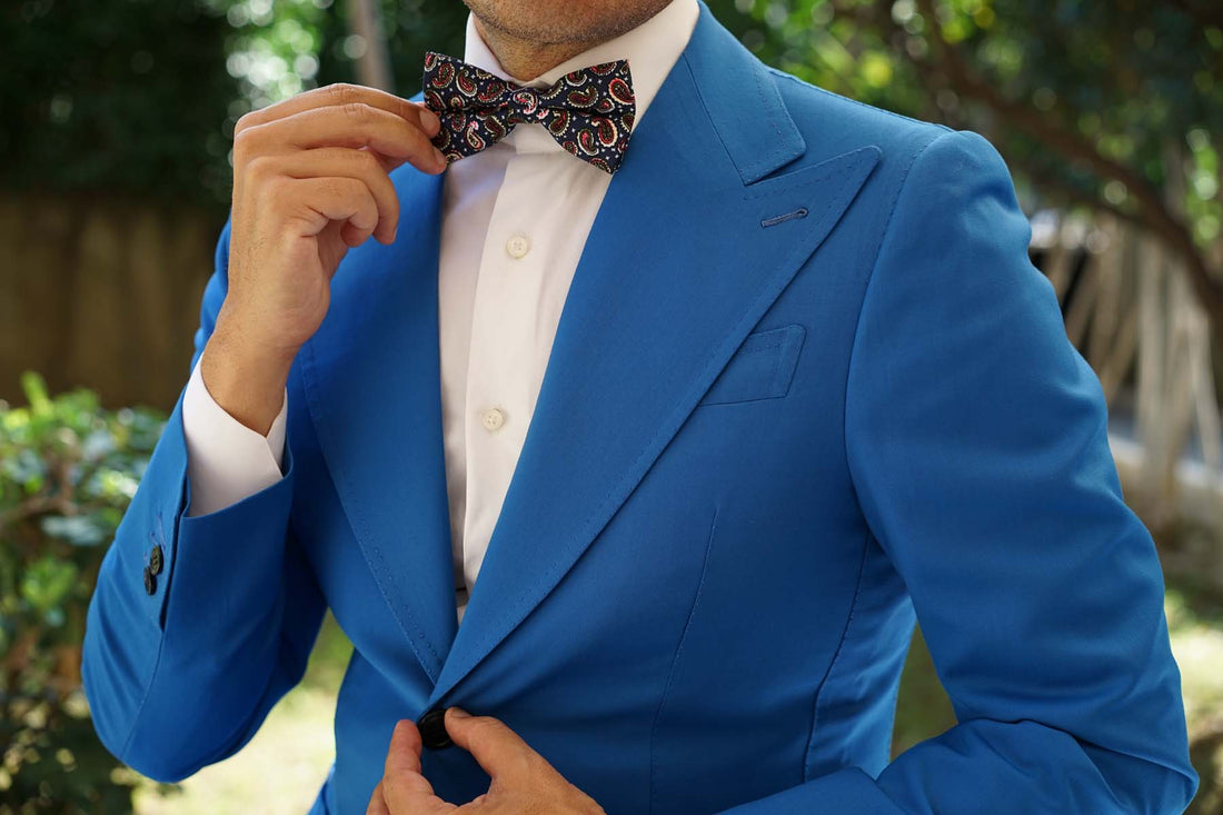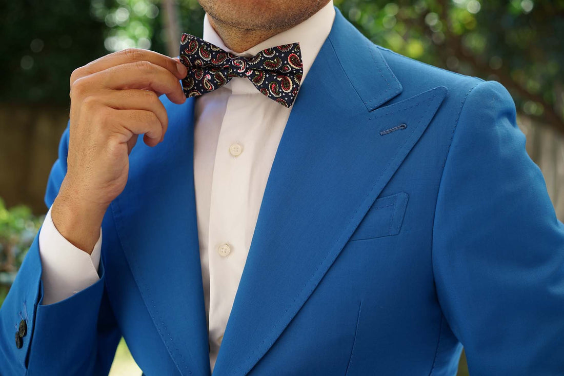 Finessed with an intricate paisley teardrop pattern, the Prague Paisley Blue Floral Bow Tie adds a sophisticated accent to your formal tailoring. The navy background is met with ebullient pink, yellow, white and green hues for a vibrant aesthetic. Elegantly constructed and stitched by hand, the Prague Paisley Blue Floral Bow Tie is as high-quality as it is stylish. Wear it to the boardroom for a confident statement. Designed exclusively by the Brothers at OTAA.