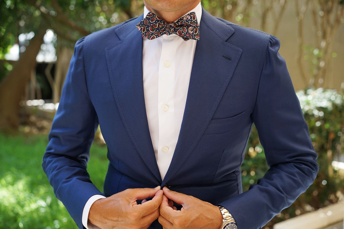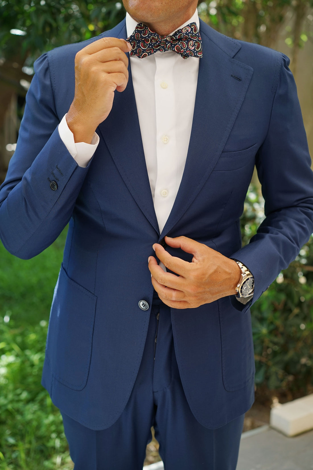 Prague Paisley Blue Floral Fabric Self Diamond Bowtie