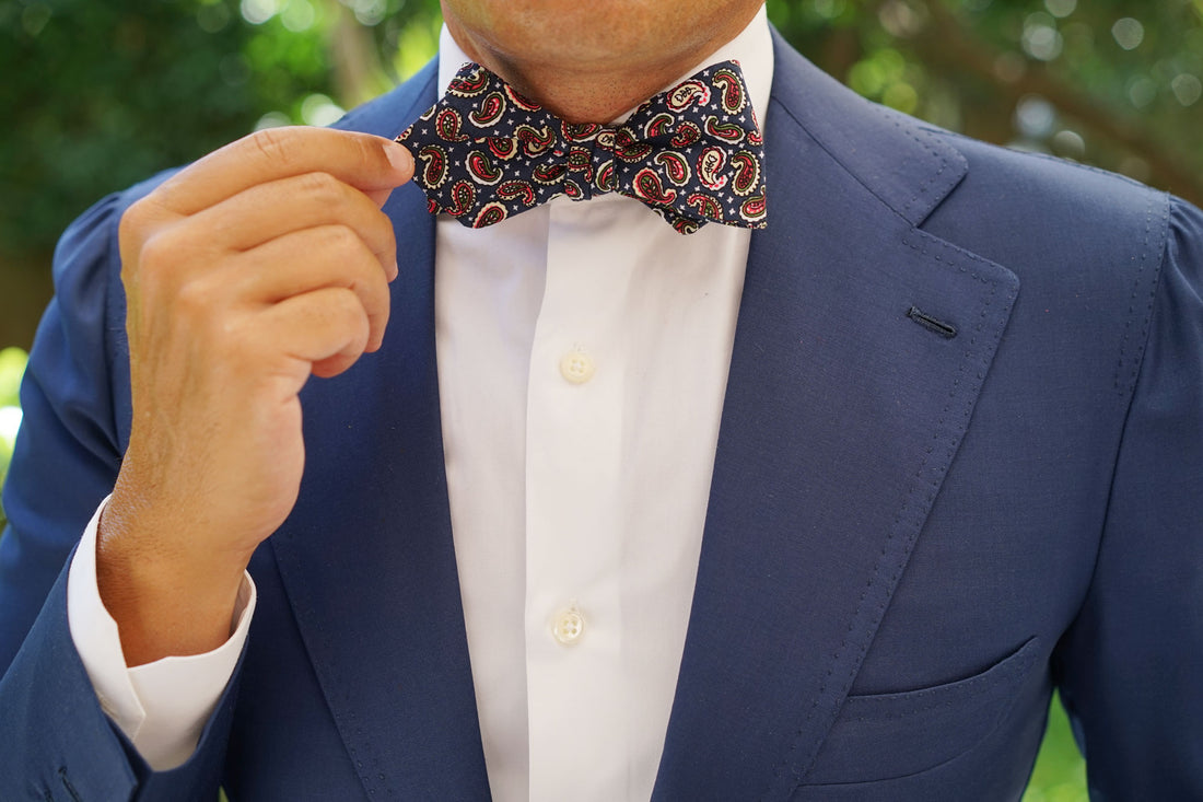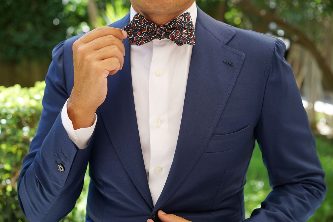 Finessed with an intricate paisley teardrop pattern, the Prague Paisley Blue Floral Diamond Self-Tie Bow Tie adds a sophisticated accent to your formal tailoring. The navy background is met with ebullient pink, yellow, white and green hues for a vibrant aesthetic. Elegantly constructed and stitched by hand, the Prague Paisley Blue Floral Diamond Self-Tie Bow Tie is as high-quality as it is stylish. Designed exclusively by the Brothers at OTAA.