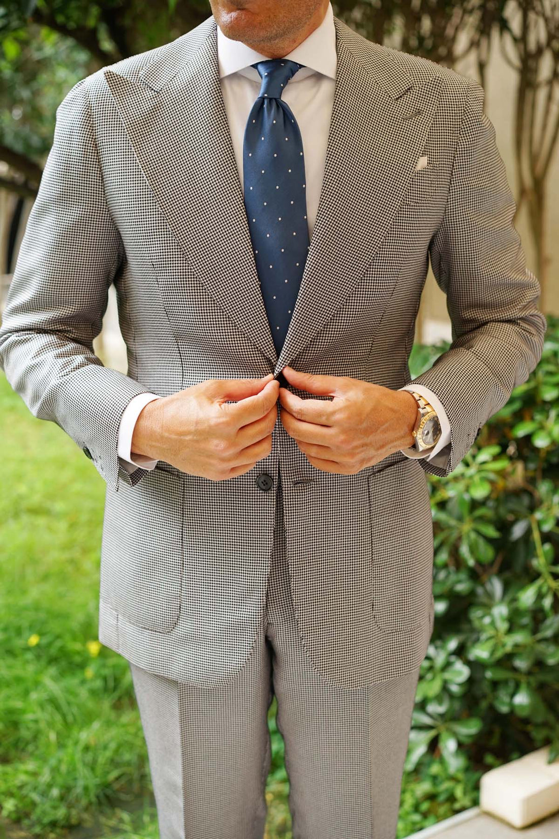 The Prussian Blue Polka Dot Necktie boasts a stellar reprisal of the classic white polka dot pattern dusting a blueberry Windsor navy satin base. The Kingdom of Prussia was a driving force behind the unification of Germany and this necktie will be the driving force behind the unification of your slick ensemble. Subtle and stylish in all the right places, this ace design is one for the history books.